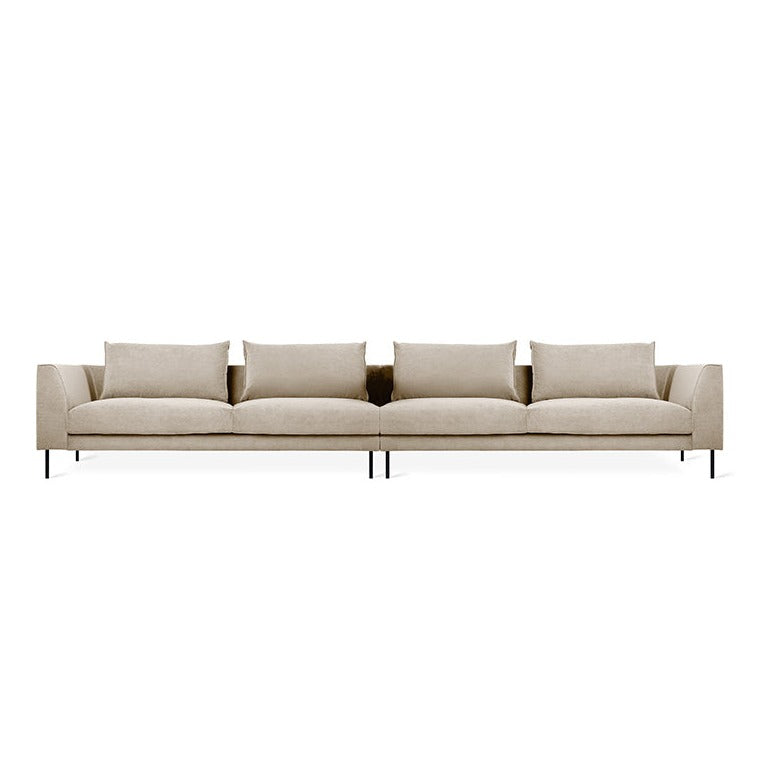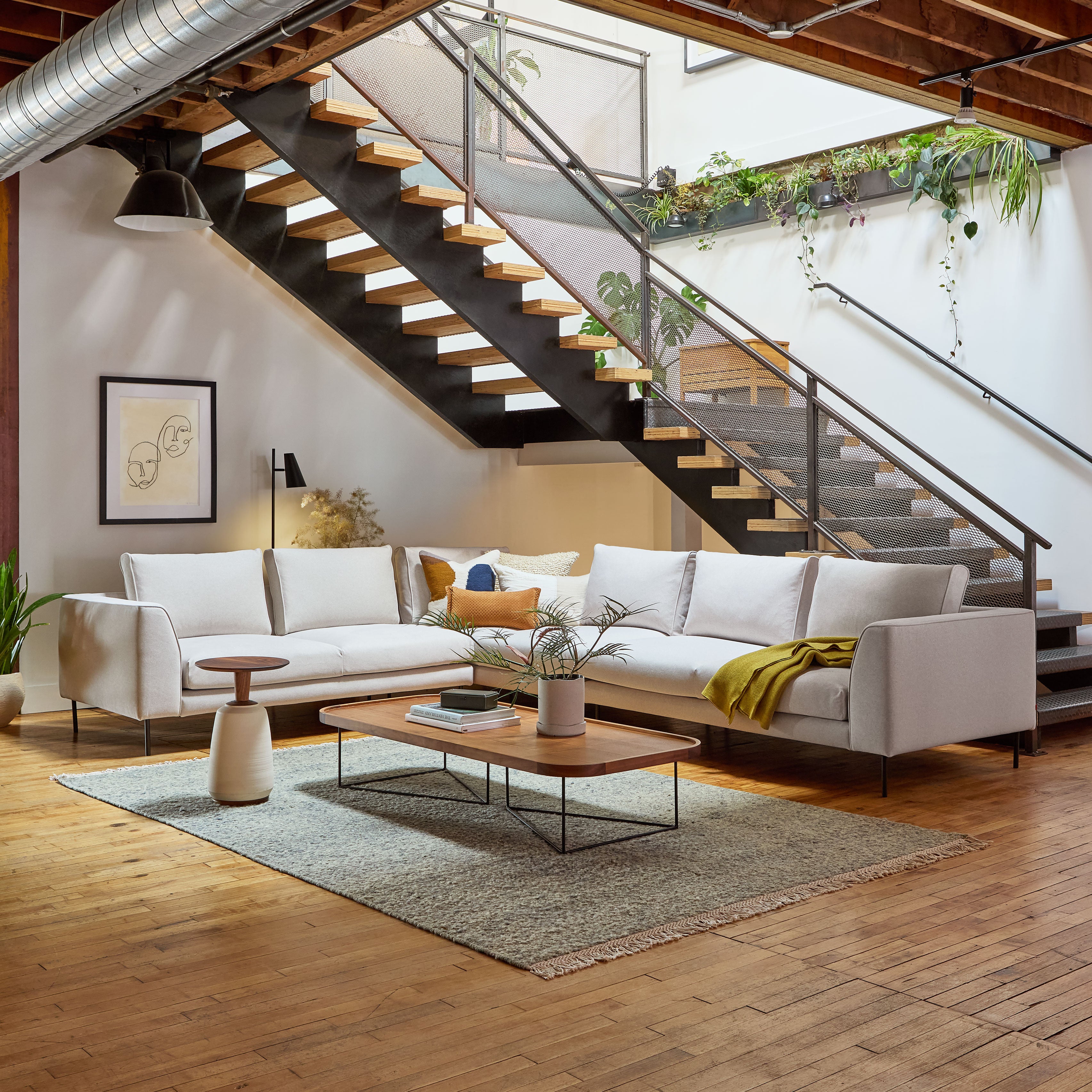 Clean, low and perfect for endless lounging – the Renfrew from Gus* Modern blends deep, sublimely comfortable cushions with delicate legs, so it resembles both a sturdy anchor for your weary bones and a floating wisp of texture and light. How about that! Discover Renfrew multiple sizes and configurations of sofa and sectional.