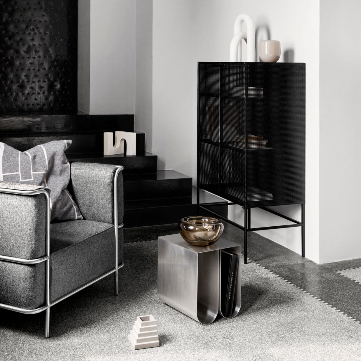 The Curved Side Table is a beautiful and timeless small table that combines a sculptural and handcrafted aesthetic. Made of slick beige powder coated steel this small side table is also able to store your magazines within its curved base.