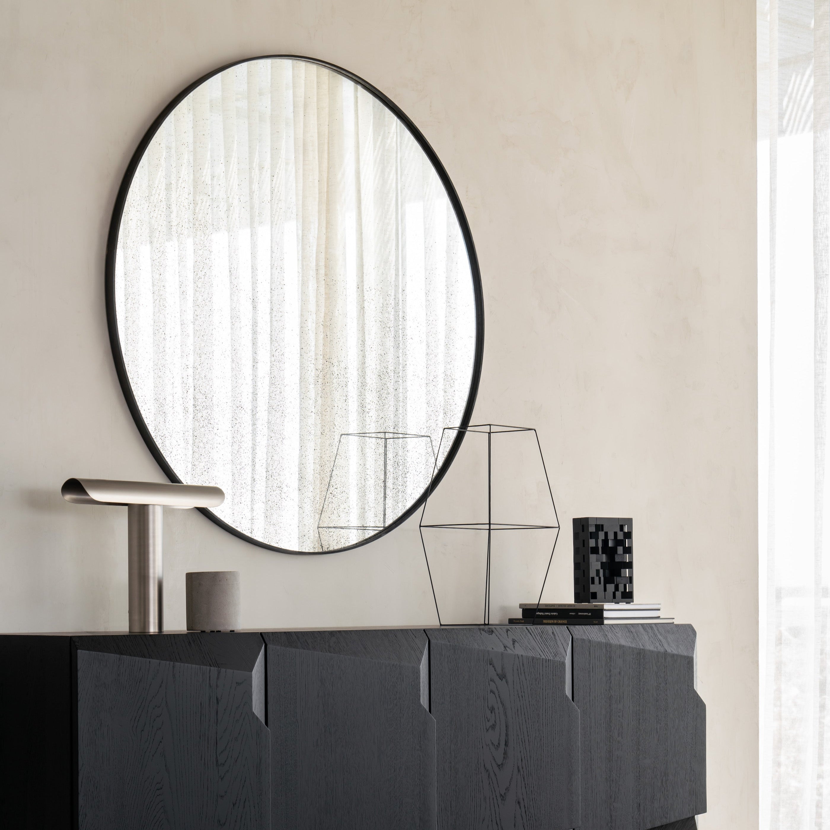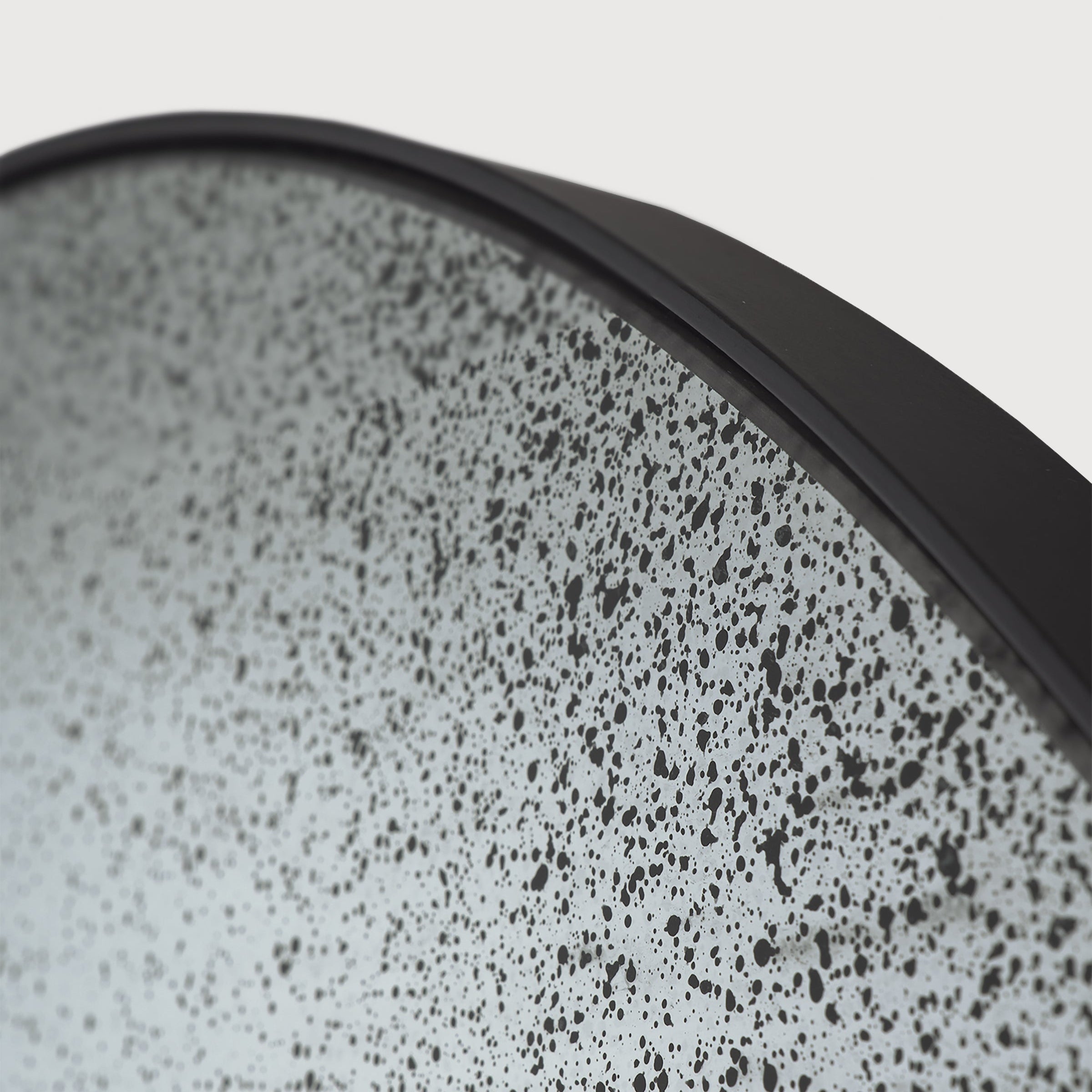 This aged round mirror finds itself in the middle ground between functionality and art. Adorning the living room as wall art or serving a practical purpose in a bathroom or dressing, the unique piece gives the functional object an artful twist.