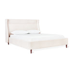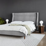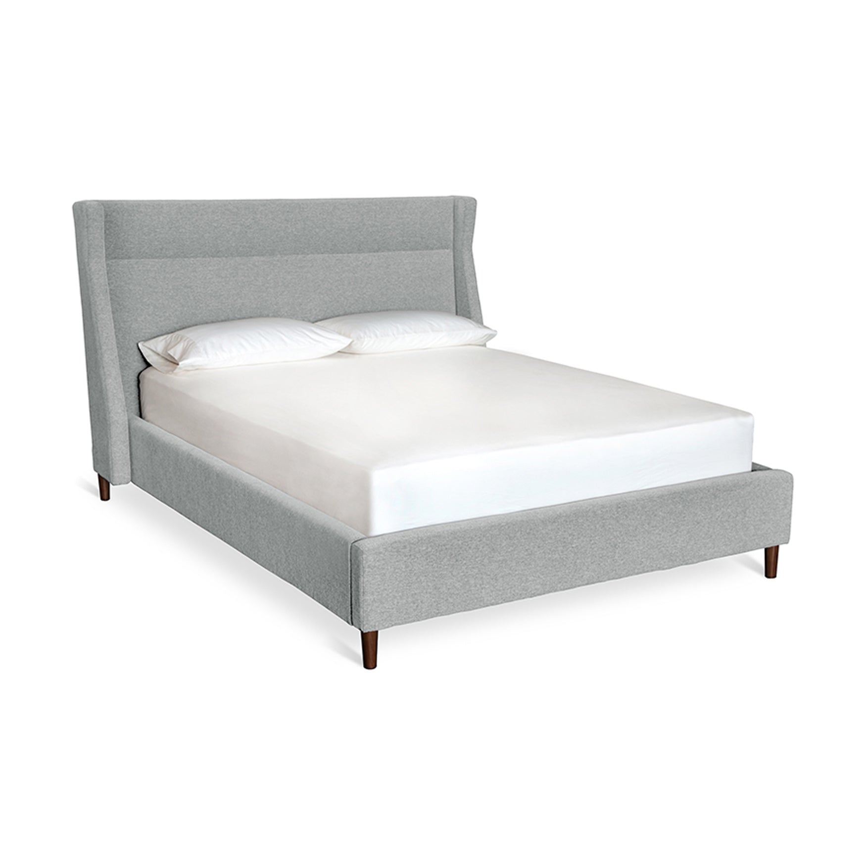 The Carmichael Bed fuses traditional and contemporary sensibilities, bringing clean, modern lines to a classic style. The design features a fully upholstered headboard, footboard and side rails, with elegant, tapered solid wood legs. The bed includes a sturdy mattress suspension system which eliminates the need for a box spring. All wood used in the frame and legs is FSC®-Certified, in support of responsible forest management.