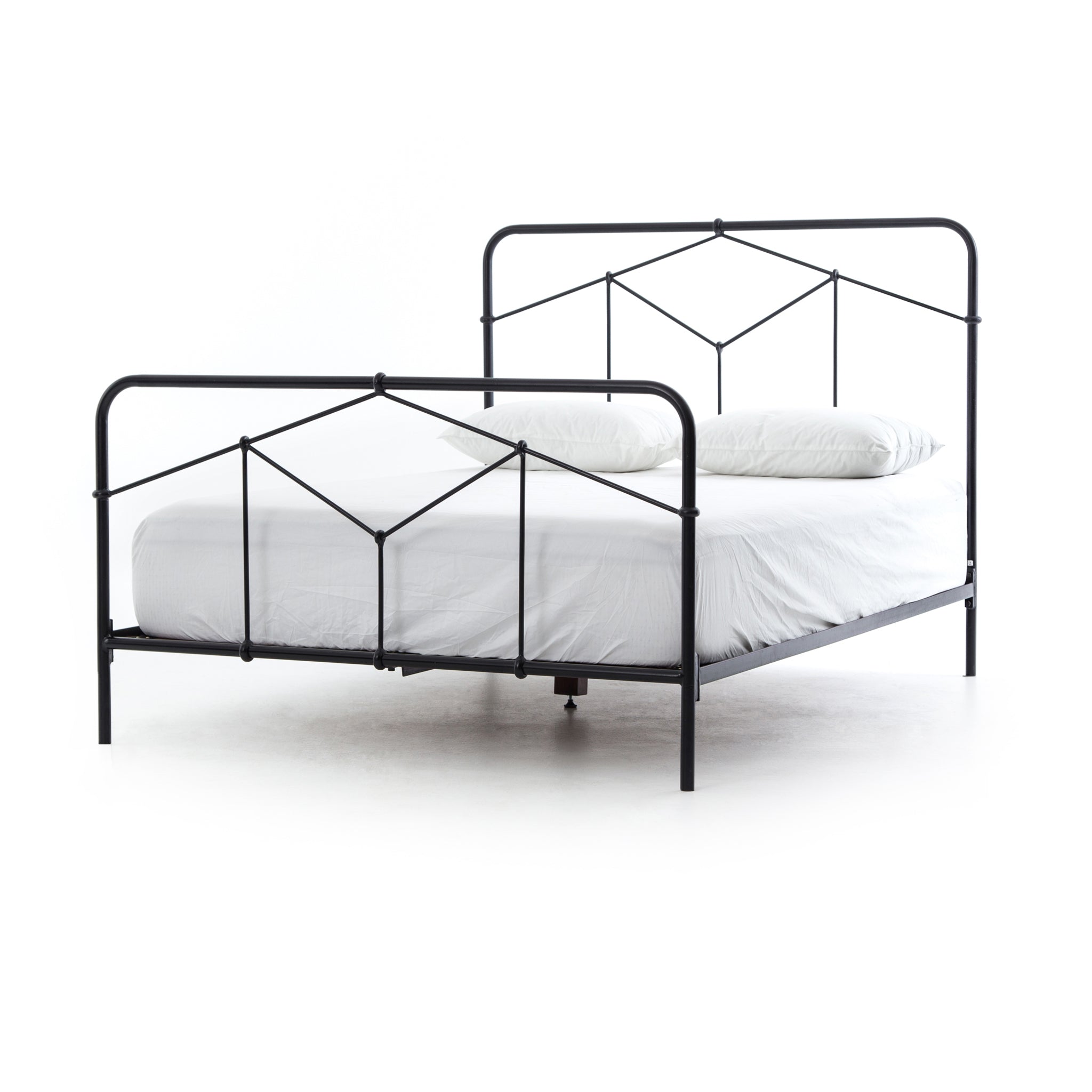 Modern geometric patterns update a design inspired by vintage European hospital beds. Simple iron tubing looks airy and feels substantial.
