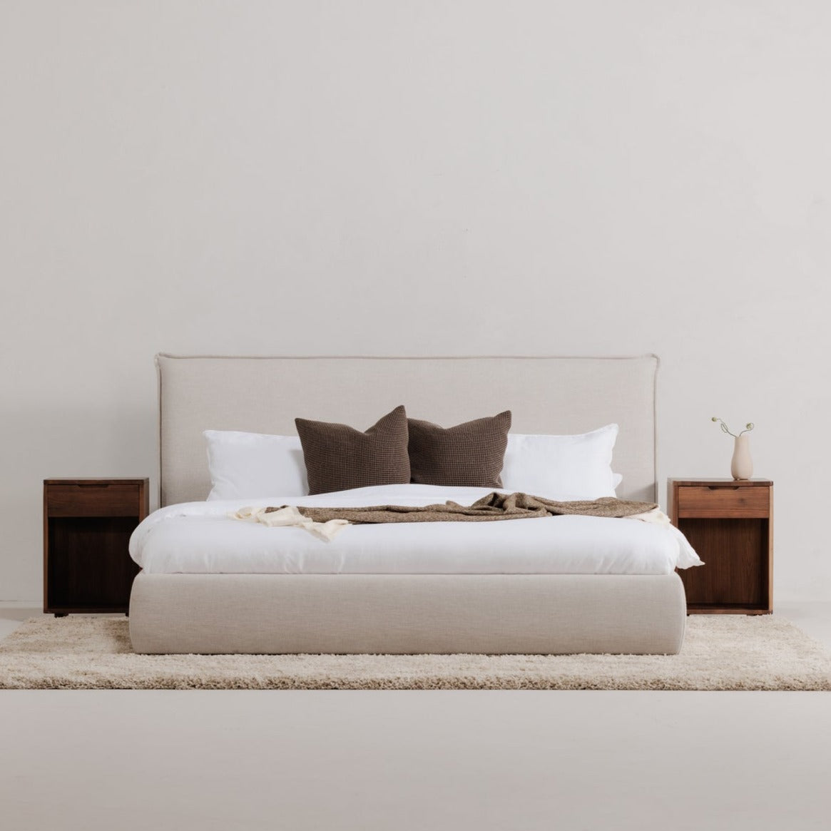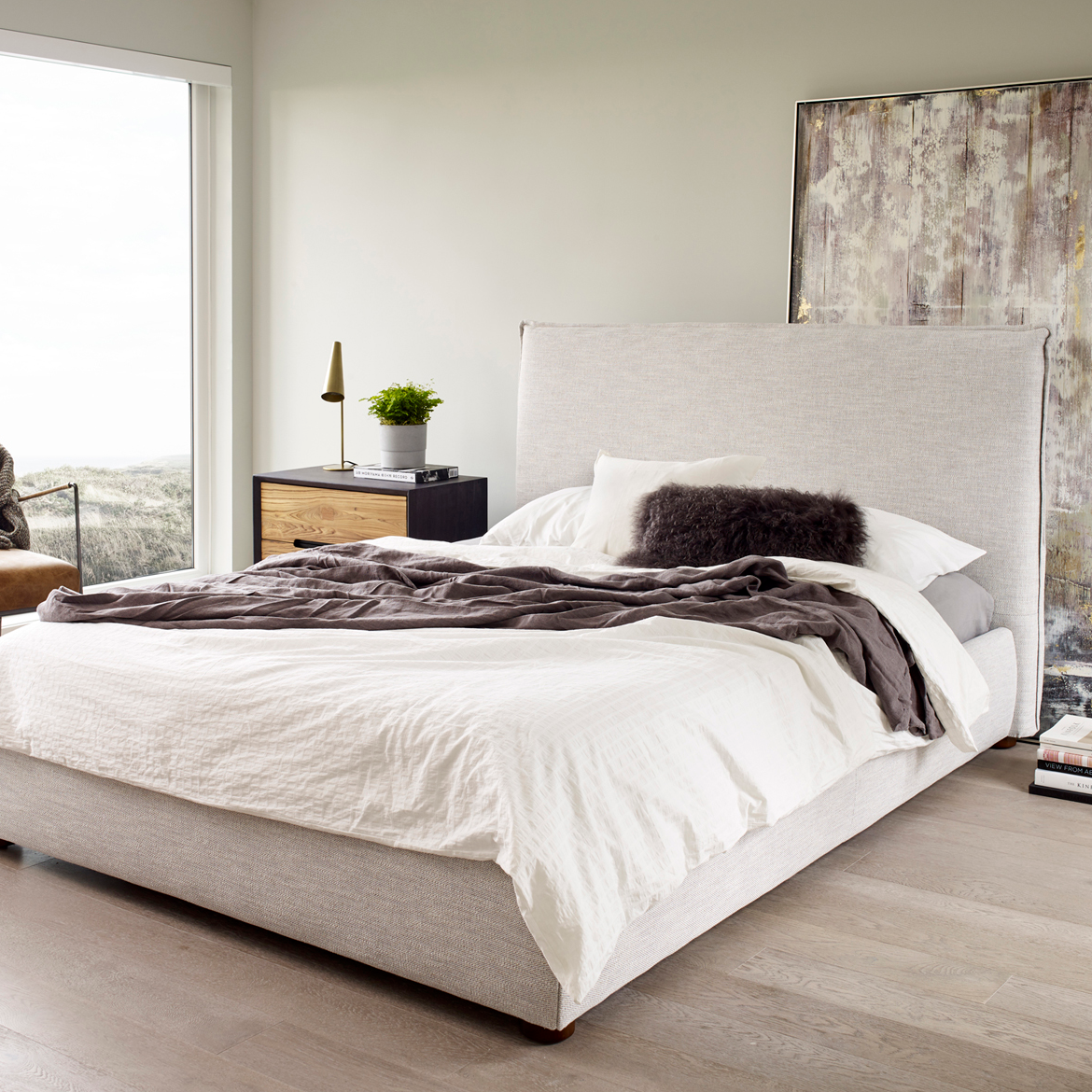 Upholstered from a soft, linen blend fabric, the Tidal Bed is relaxed and welcoming. Its padded headboard and solid pine and engineered wood frame make it comfy and reliable, while its timeless design and neutral tone showcase a classic, practical look.