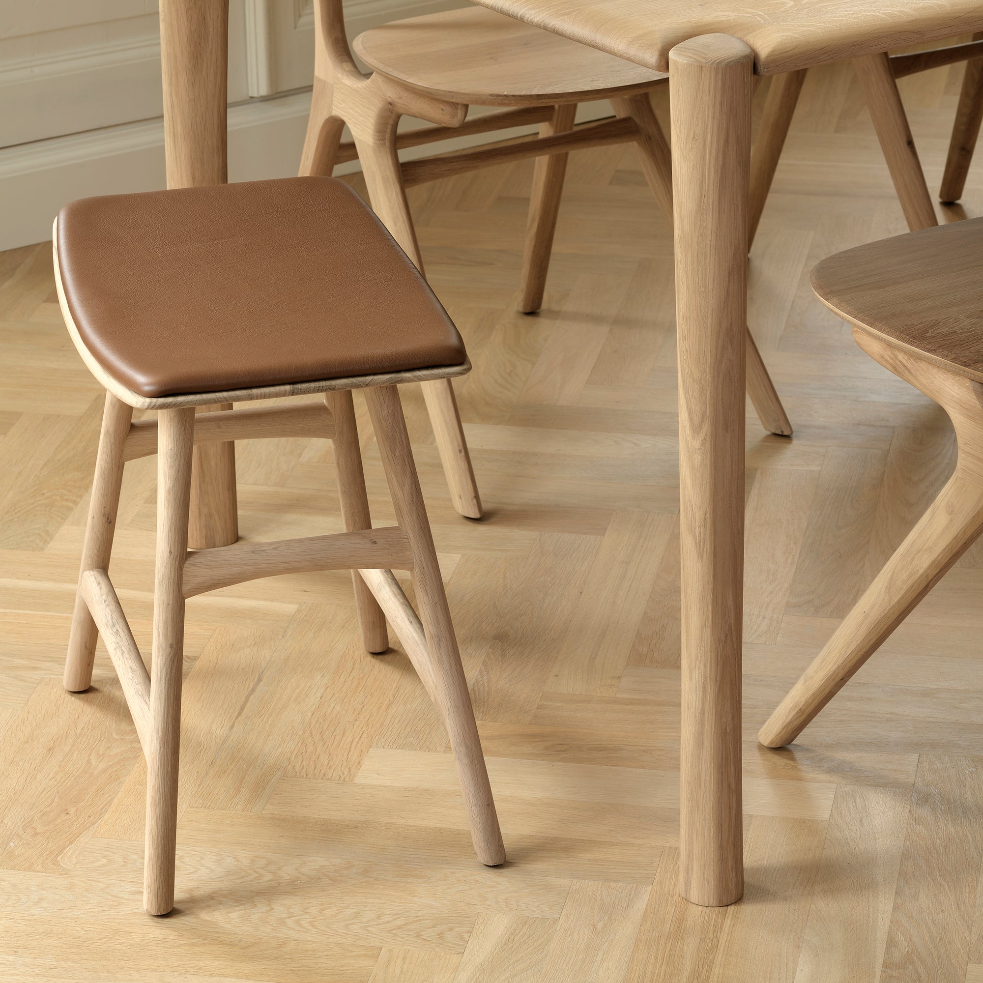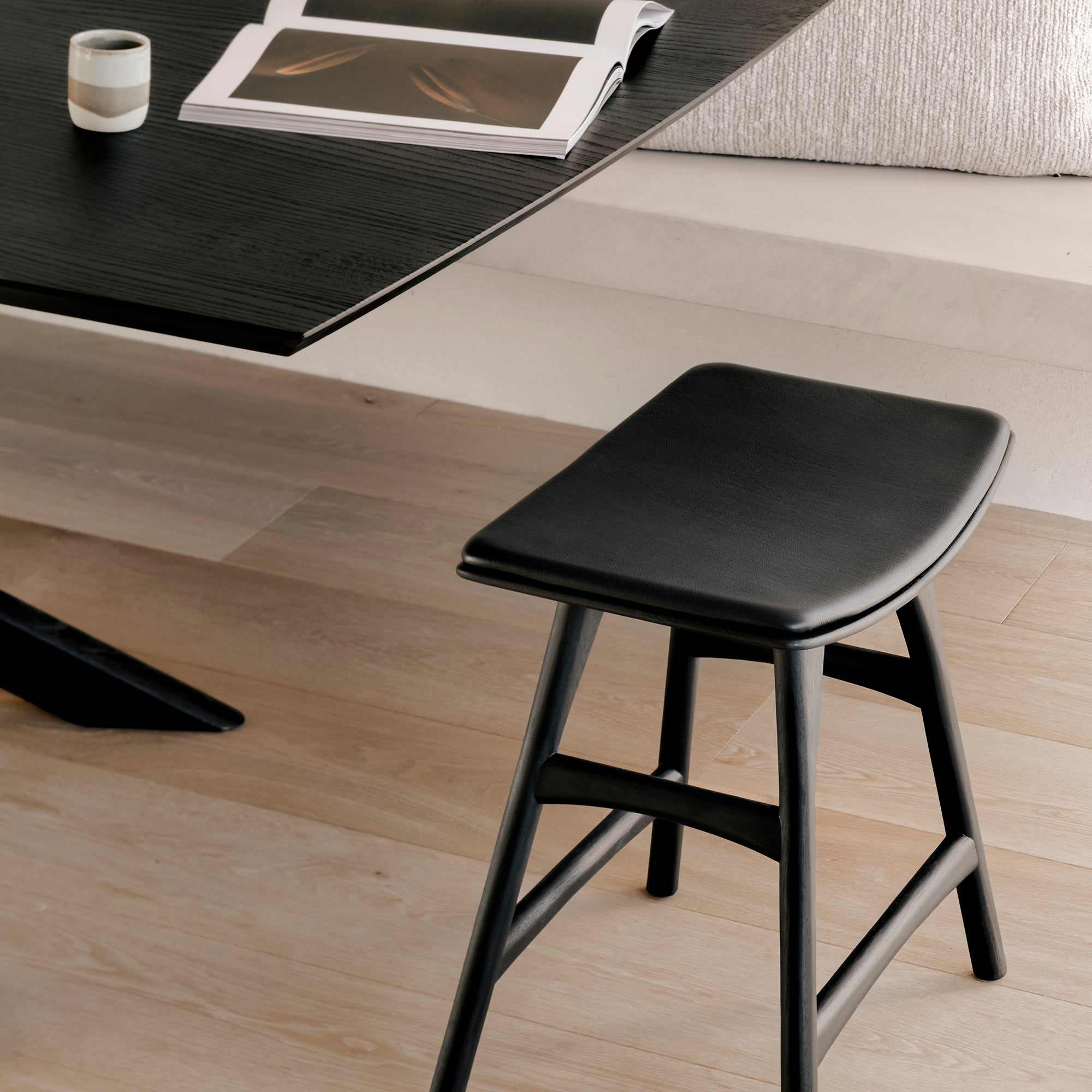 Osso is one of Ethnicraft's most popular stool designs, a truly sculptural and comfortable piece that is effortlessly versatile thanks to a range of height options for any need – dining, counter or bar. This version features a leather upholstered cushion for additional comfort. Available in two rich, striking finishes.