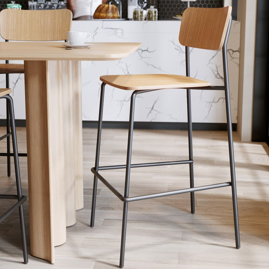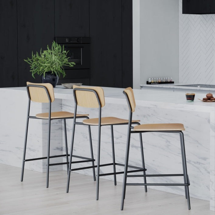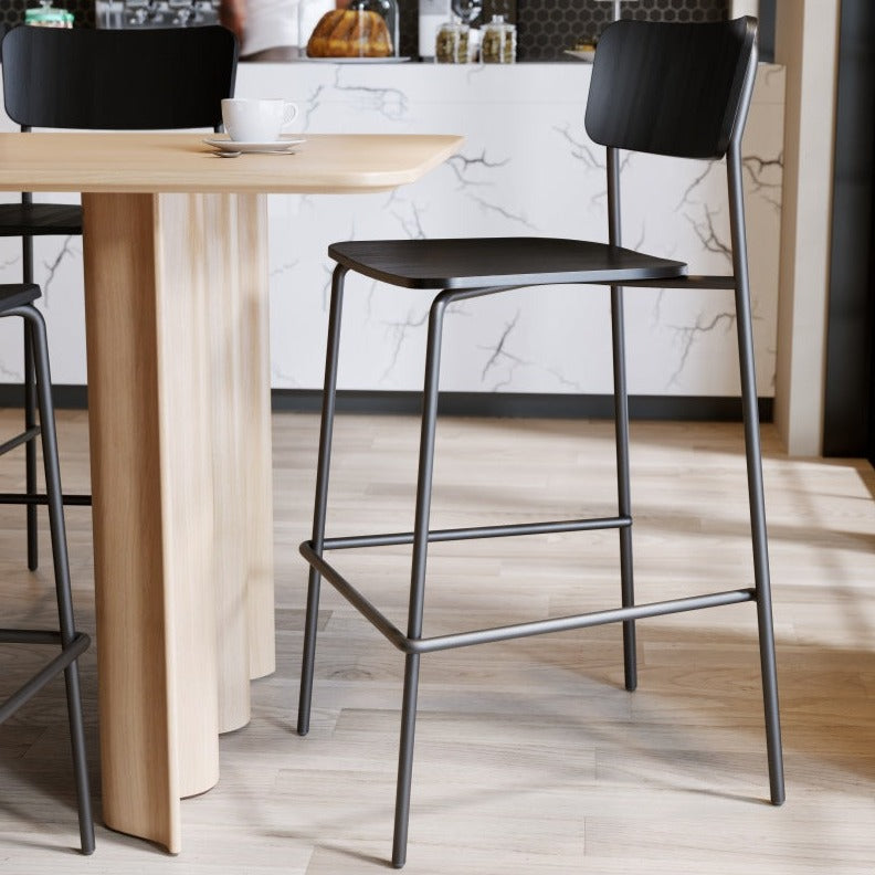 Sit with comfort and style in the Paloma stool. The clean and modern design provides function and blends easily into any space. This refined version of a classic British school chair is available in natural oak or black ash.