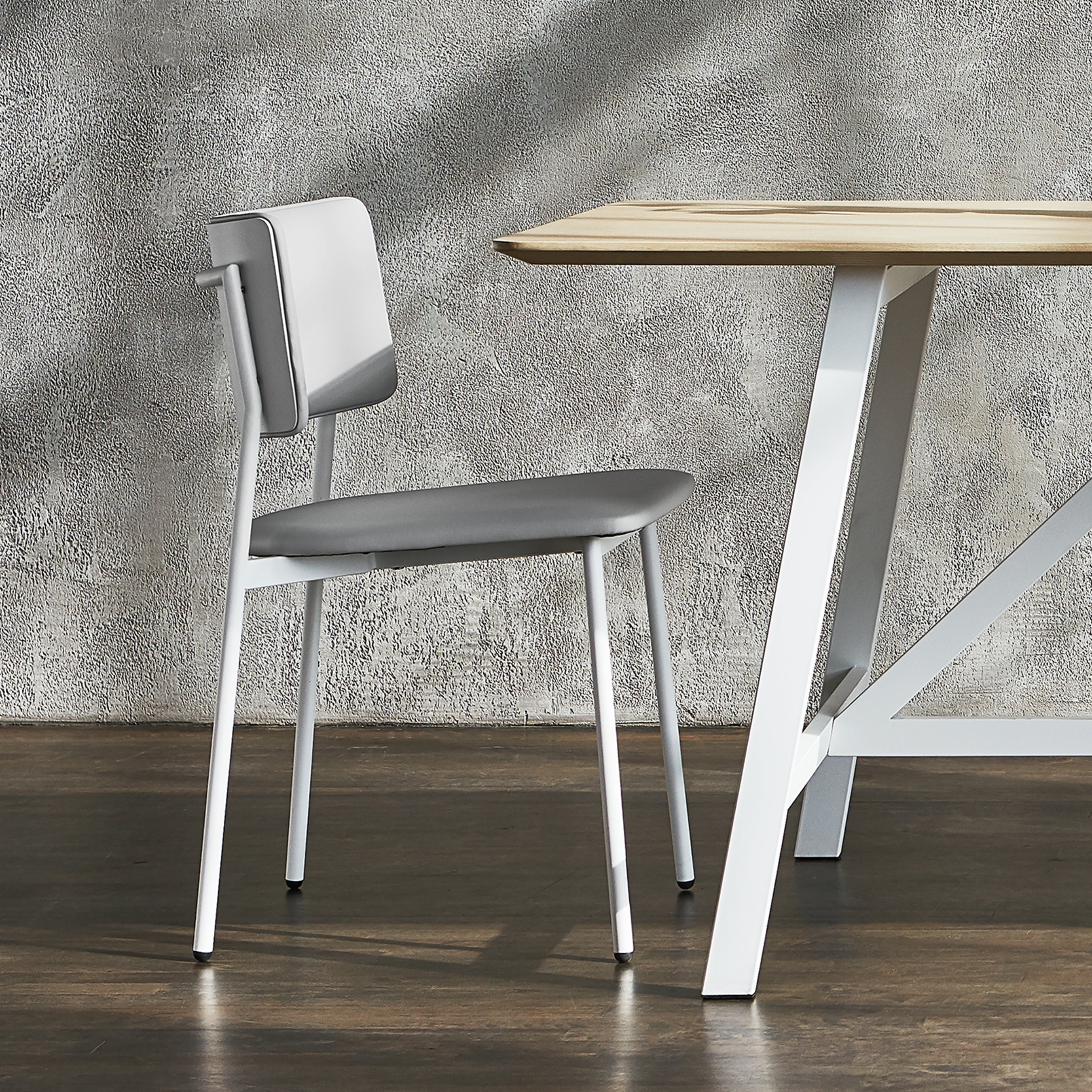 The Signal Chair is a contemporary, multi-purpose chair with sculptural simplicity and comfort, inspired by an ergonomic design approach. Understated, tone-on-tone colour palettes highlight the subtle beauty of Signal’s utilitarian materials - a durable vinyl seat and backrest and slender, powder-coated steel frame - in delicate proportions, perfect for the modern dining room or home office.