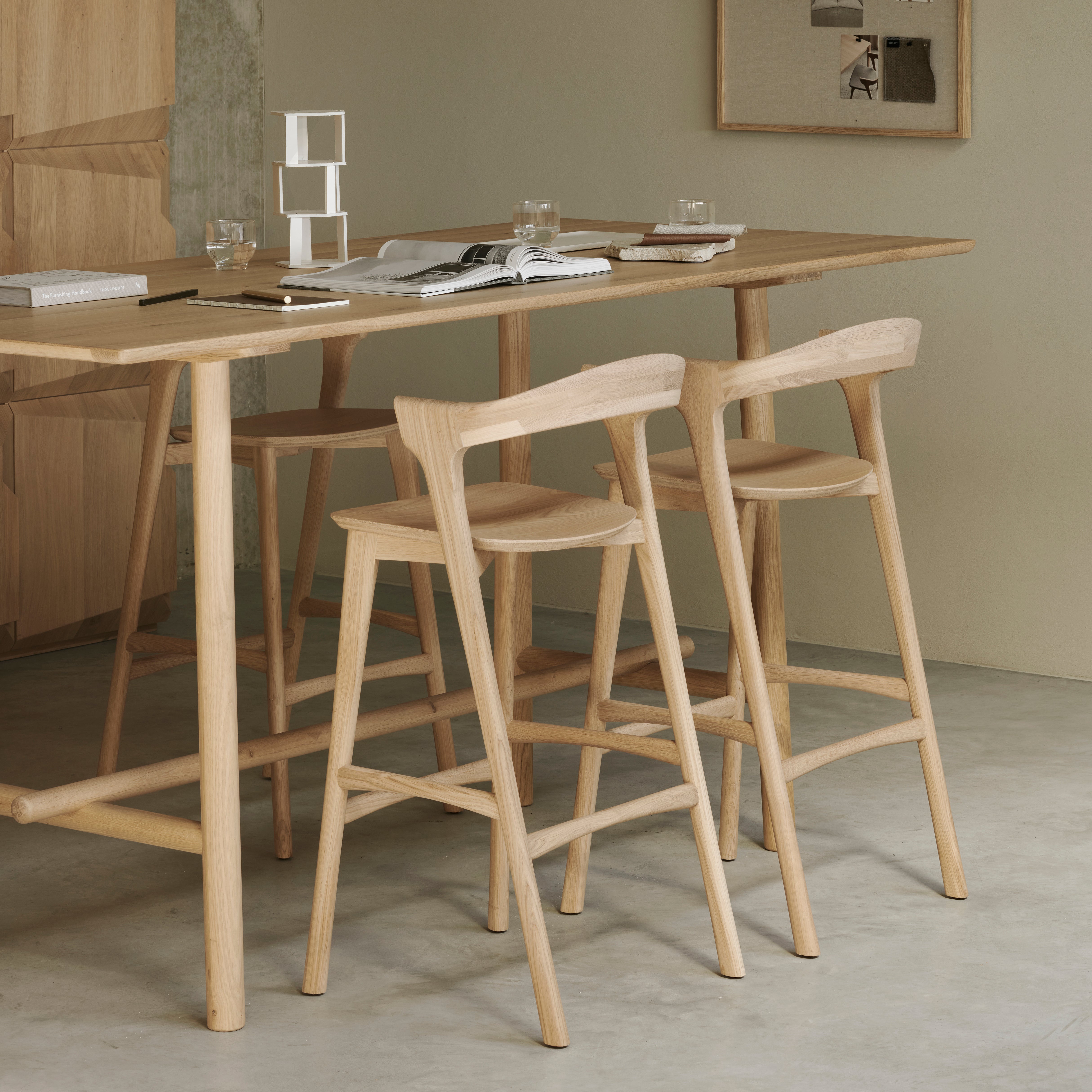 Reminiscent of a goat's curved horns, the Bok collection combines sculptural elegance and contemporary crafting into a graceful and airy form. Over the years, the Bok dining chair has become one of Ethnicraft's most recognisable designs — and the Bok stool, a clever adaptation that echoes its distinctive silhouette.