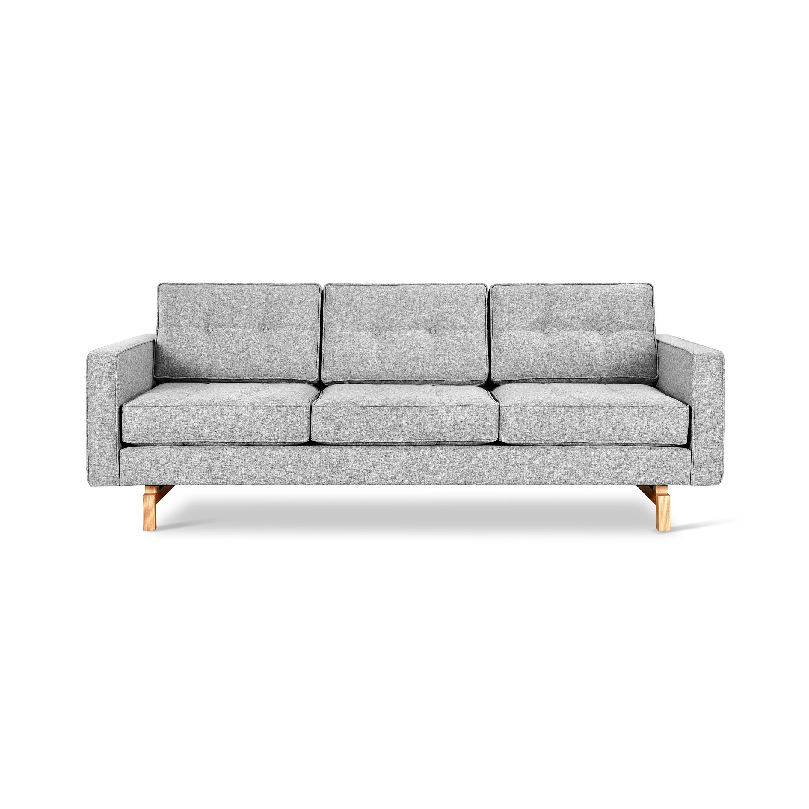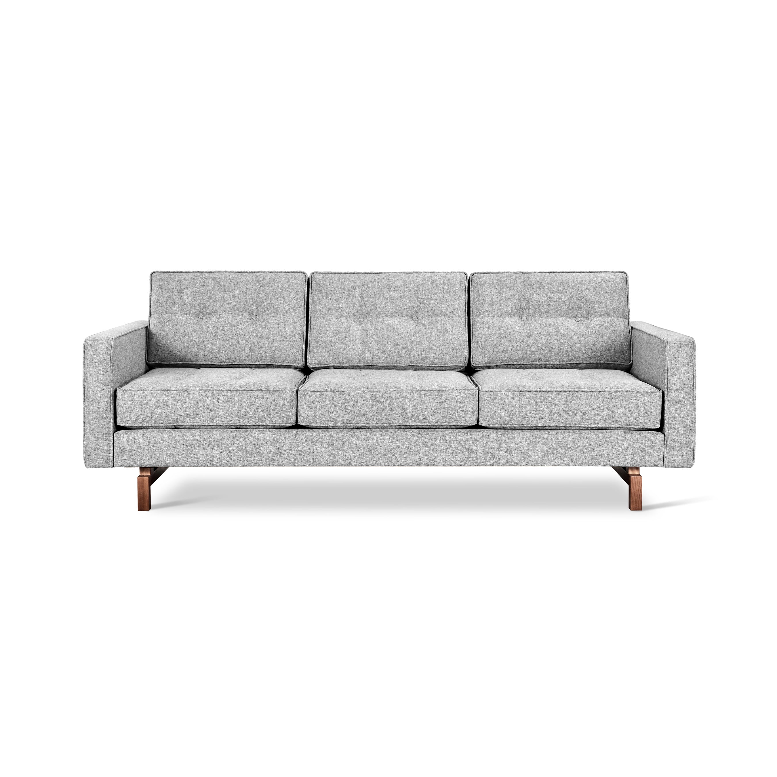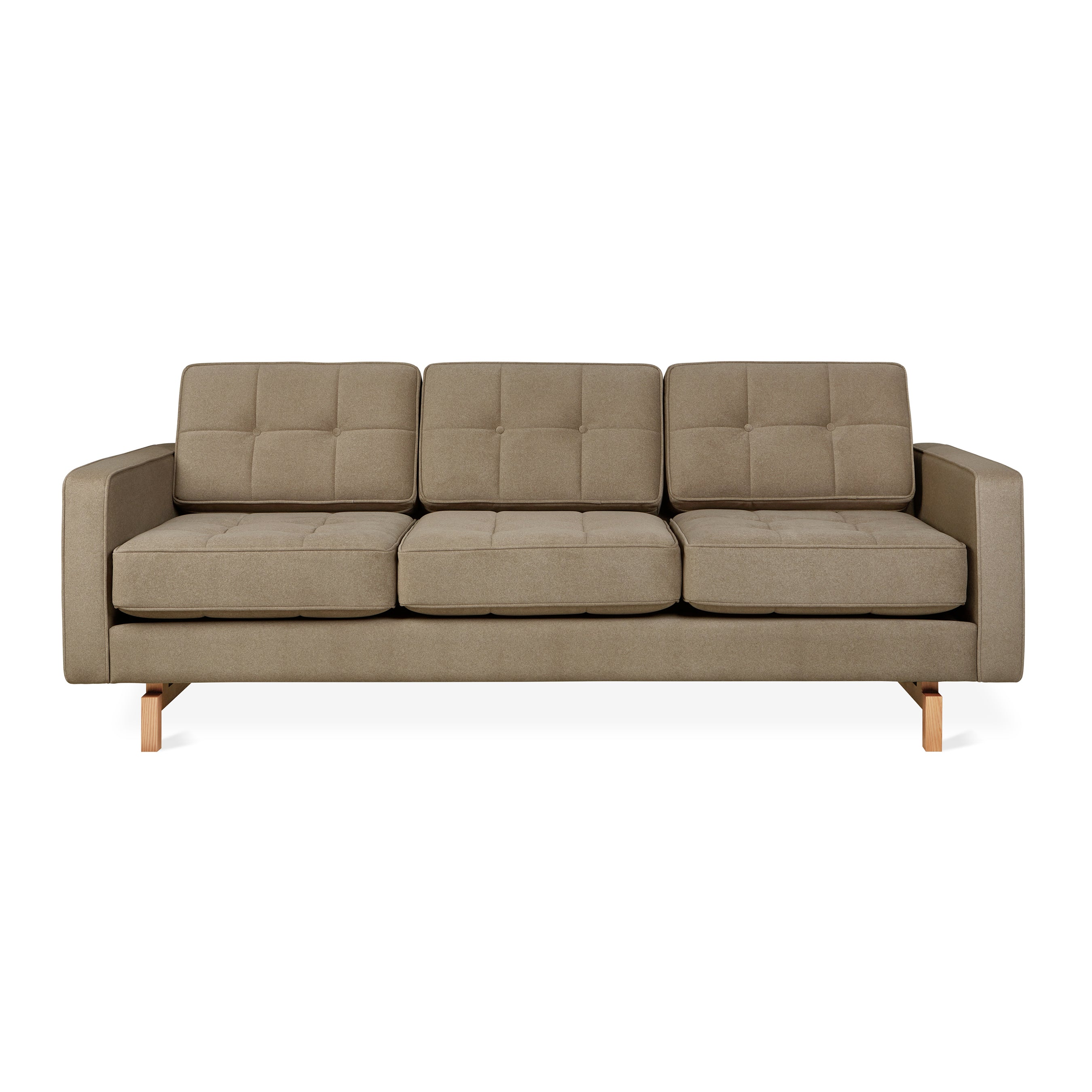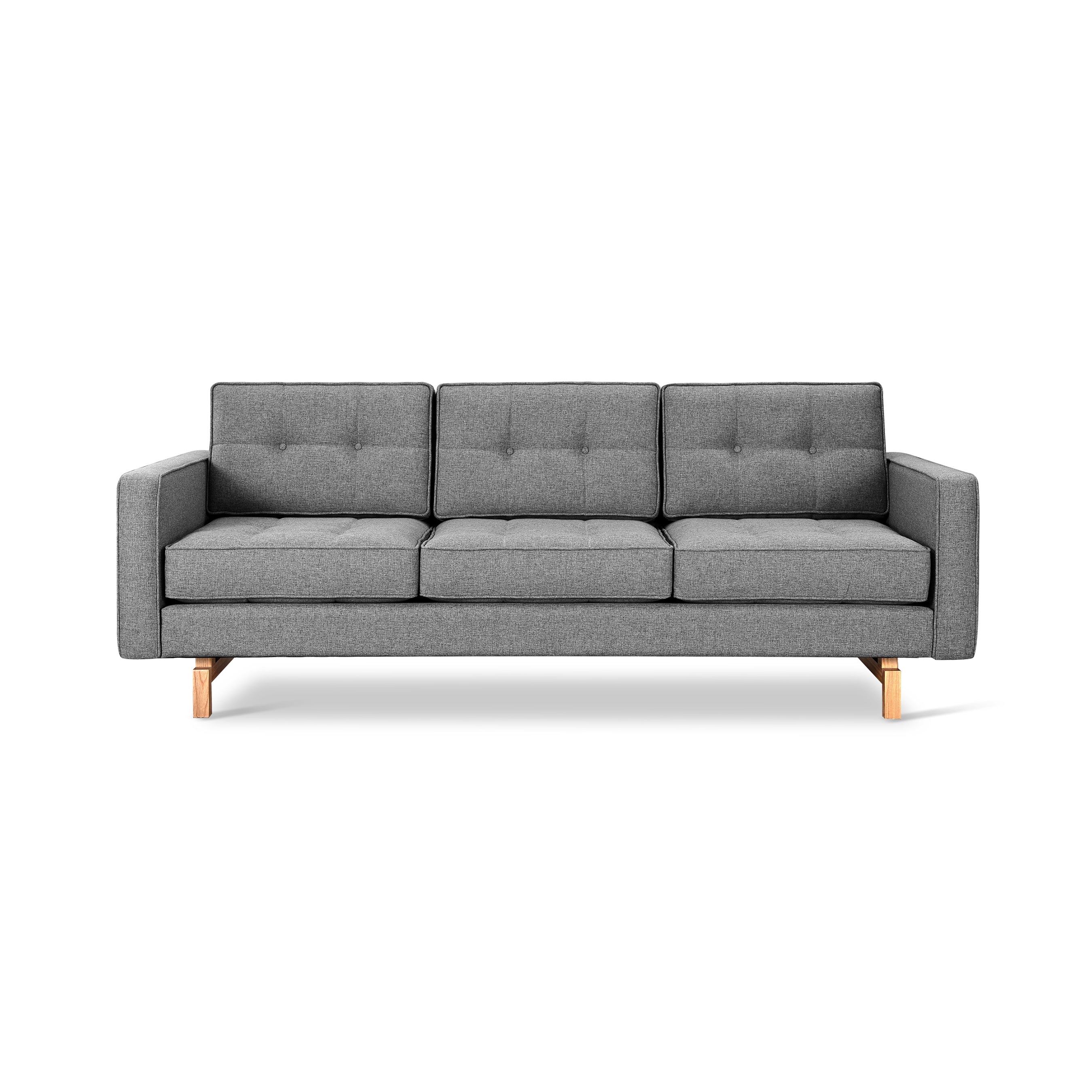 A modern update to the classic Gus* Modern Jane Series, the Jane 2 Sofa retains the iconic, mid-century look while adding contemporary enhancements. Piped upholstery edges and button-tufted cushions create photogenic surface details that are enhanced by Jane 2’s new, more refined proportions. A new wood base (available in light or dark wood finish) is inset on each piece, creating a sense of weightlessness that maximizes light and space. The frame is constructed with kiln-dried 100% FSC®-Certified hardwood in support of responsible forest management.