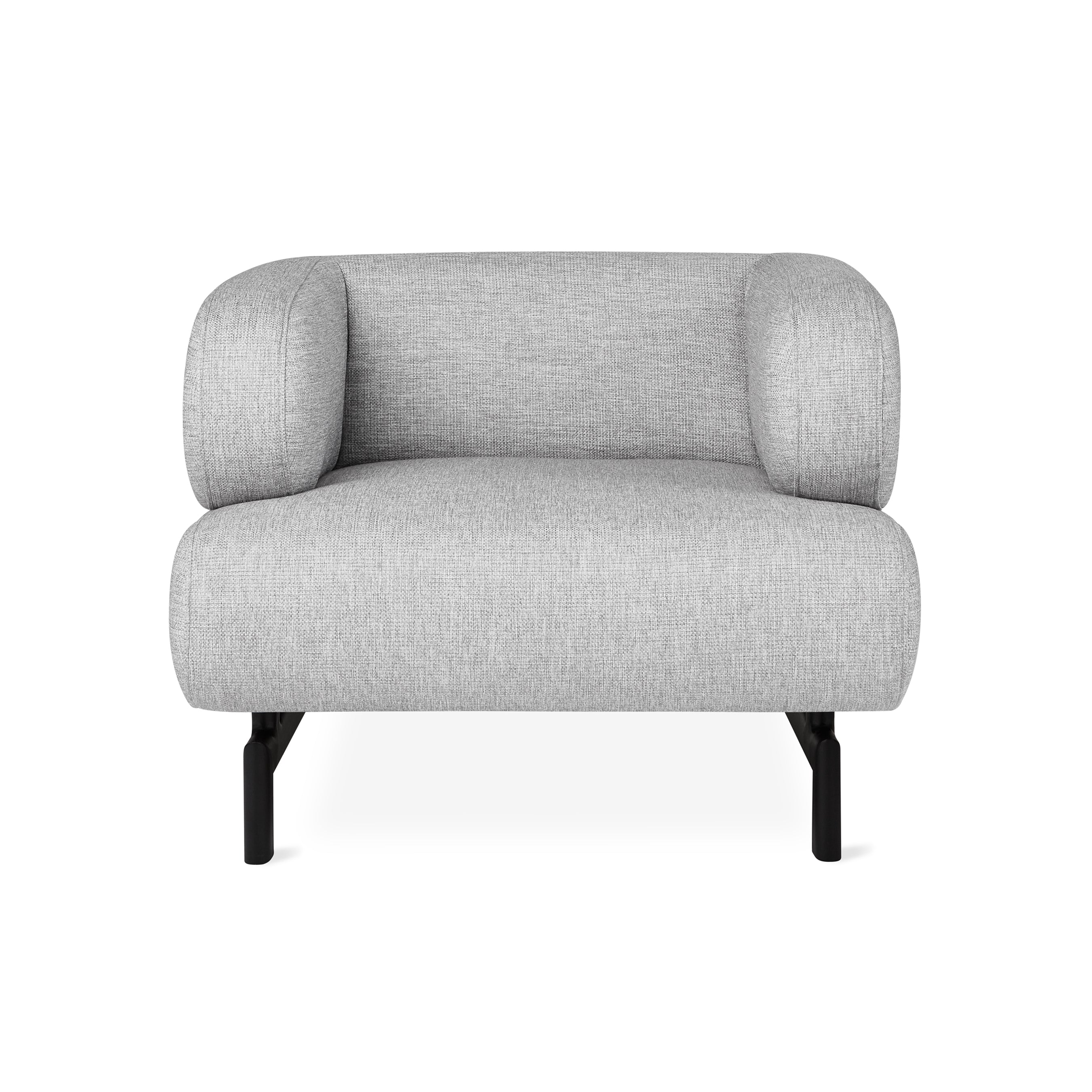 The Soren Chair showcases a contemporary take on refined comfort. Sculptural design is the hallmark of the Soren Series – geometric forms, bold curves, and a black, steel base create a subtly playful aesthetic that has ample sophistication to hold its own as a centerpiece. The minimalist look of the tight seat and back, and the airy feel of the raised base complete Soren’s modern, architectural design. The frame is constructed with kiln-dried 100% FSC®-Certified hardwood in support of responsible forest management.
