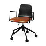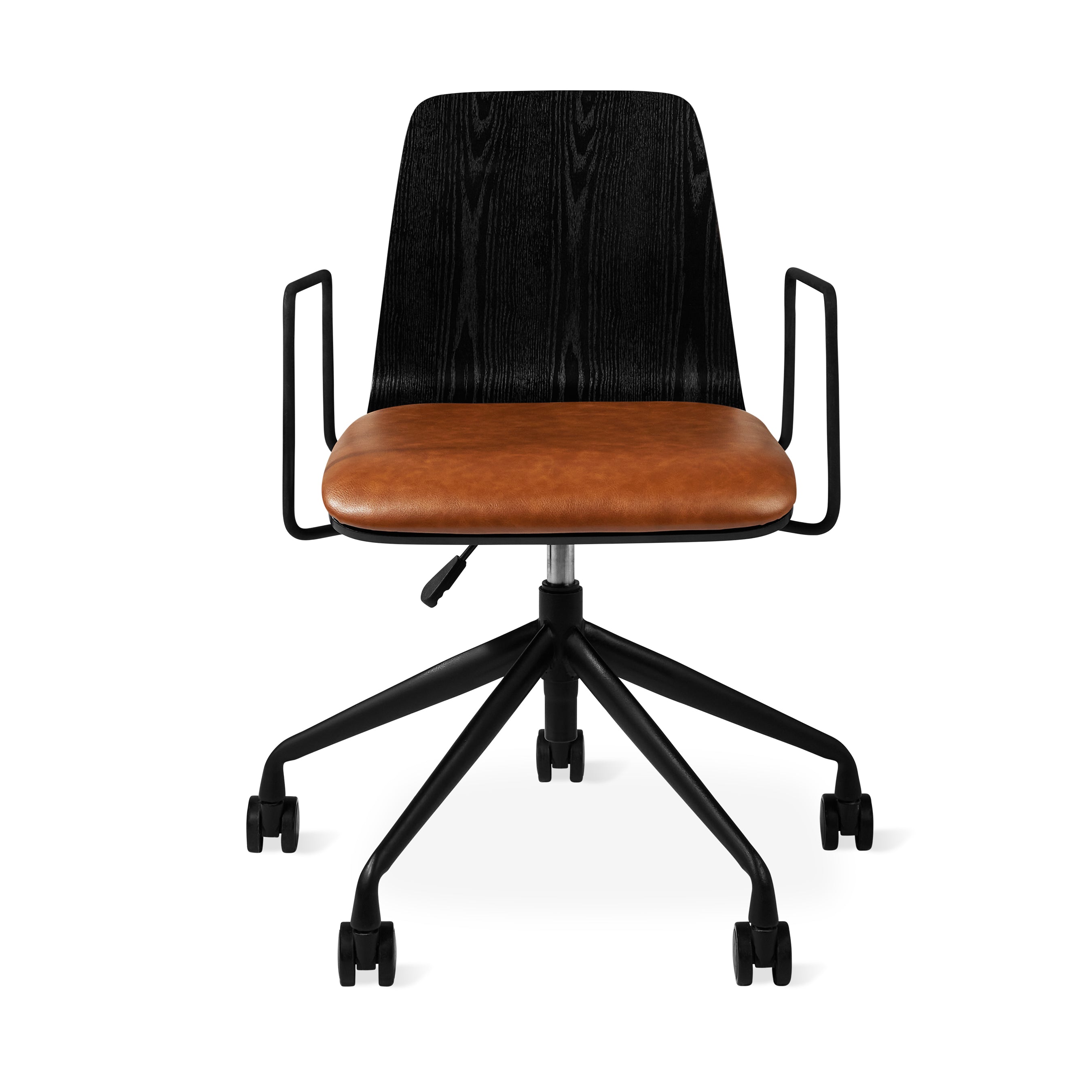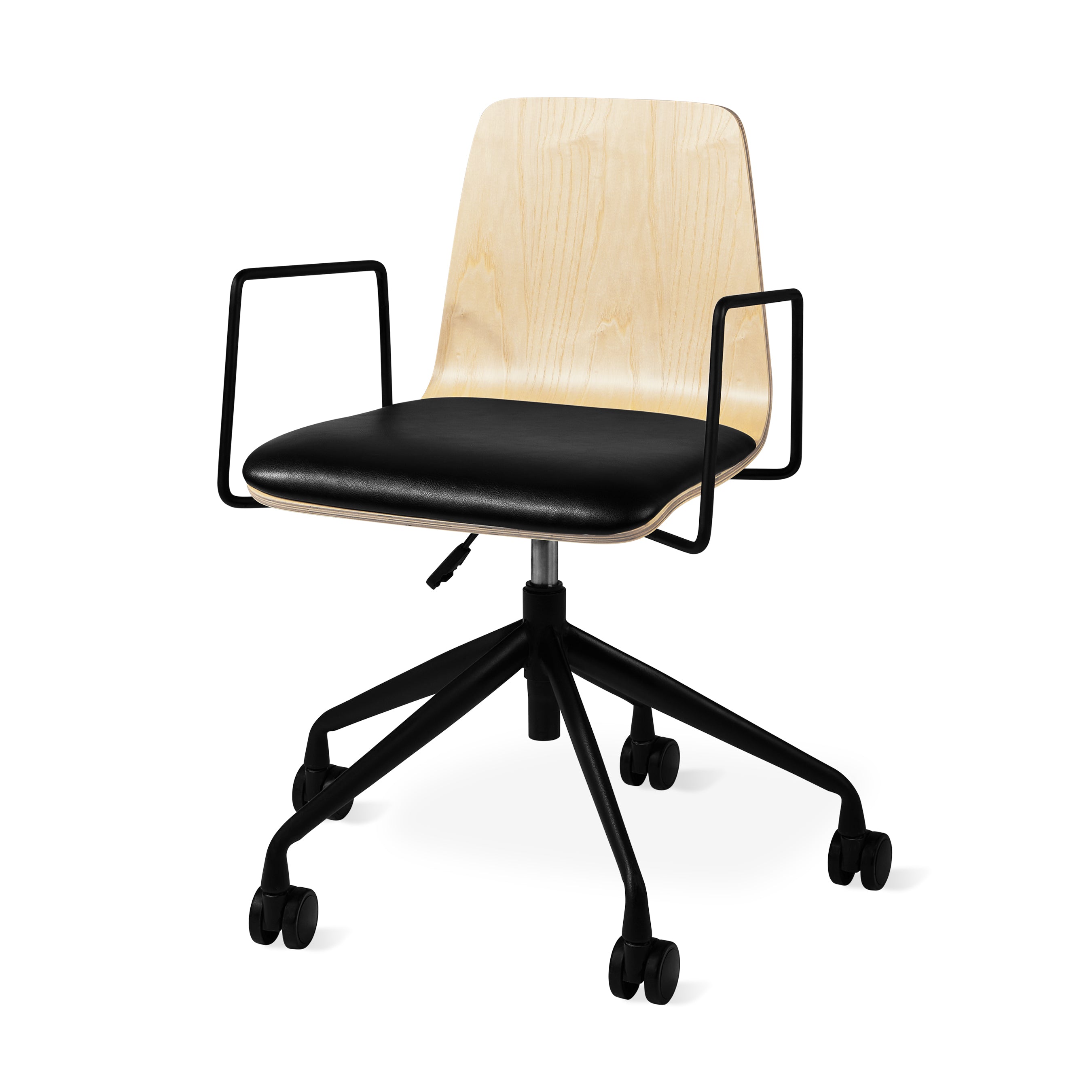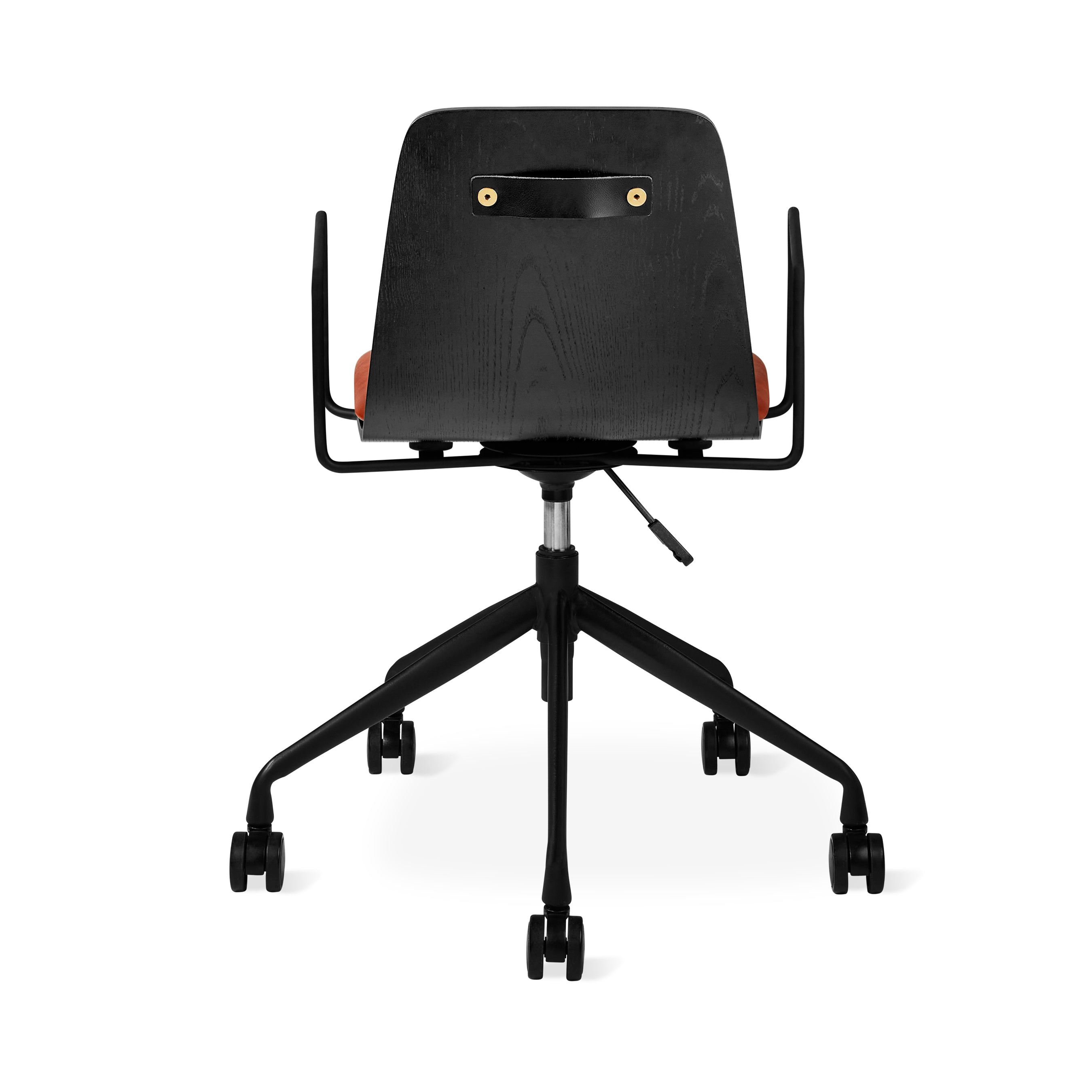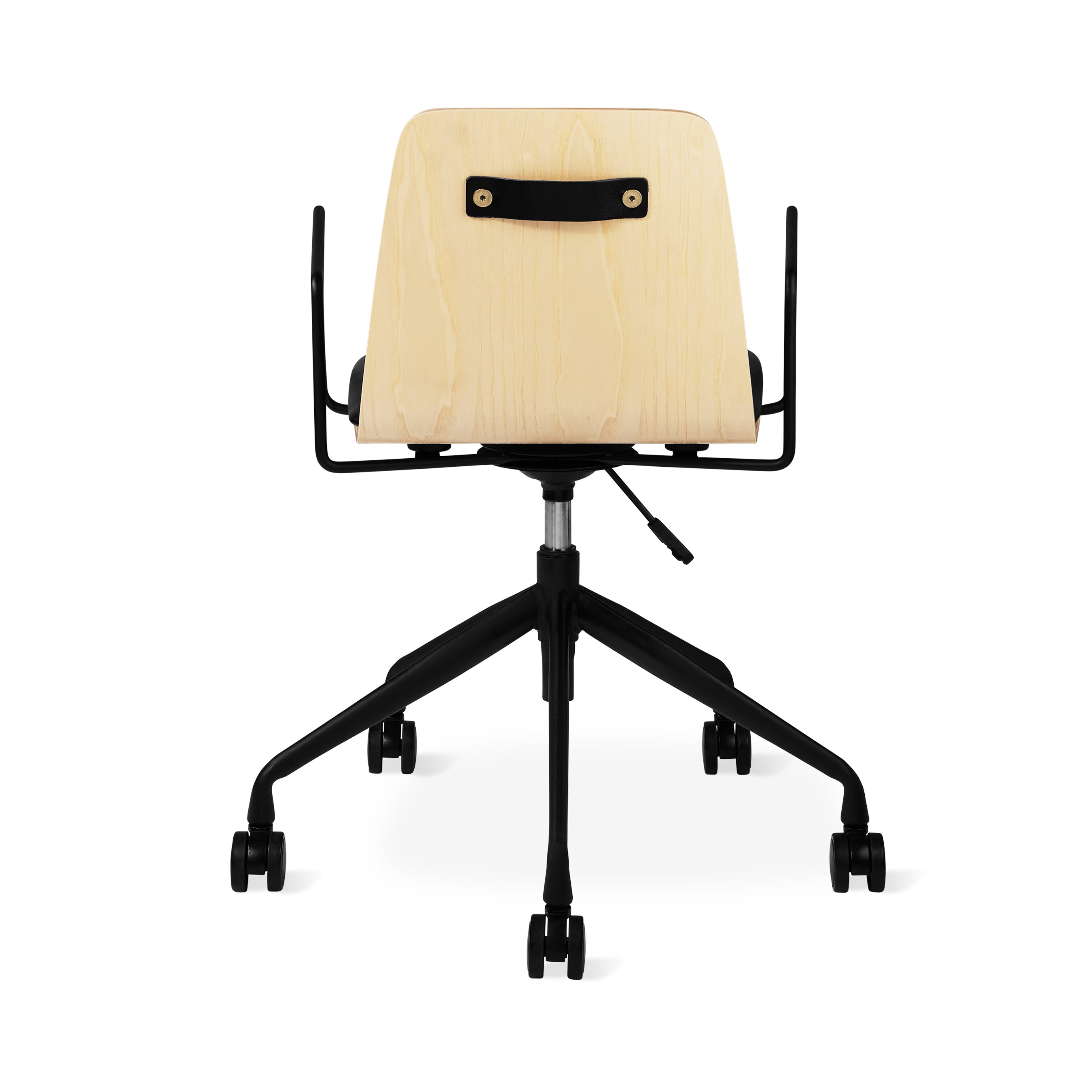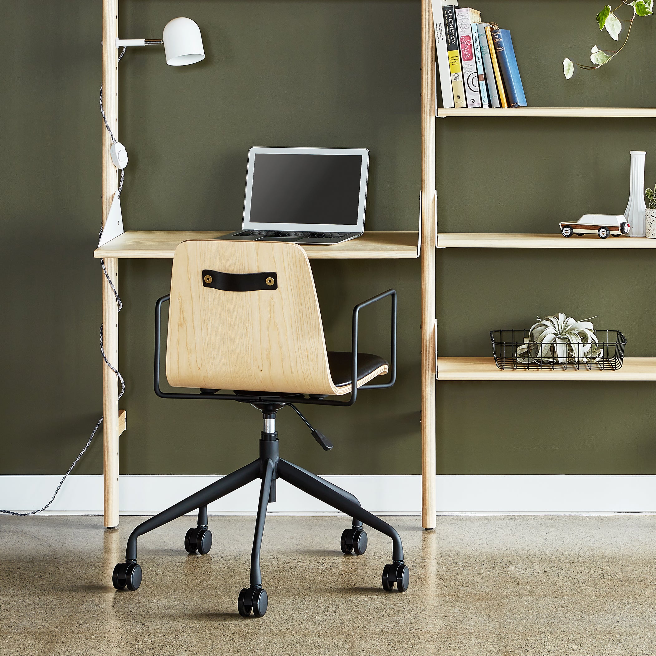 Take a spin in the Lecture Task Chair’s supportive swivel frame and you’ll start to view your workspace from a new perspective. This lightweight, formed-plywood desk chair is equal parts style and functionality with a padded seat cushion and curved back for ergonomic support. Rising to meet your highest standards, Lecture features an easy-to-use seat adjustment lever that lifts you comfortably to meet any desk or table. Five legs for stability and five stars for its ability to modernize your workspace.