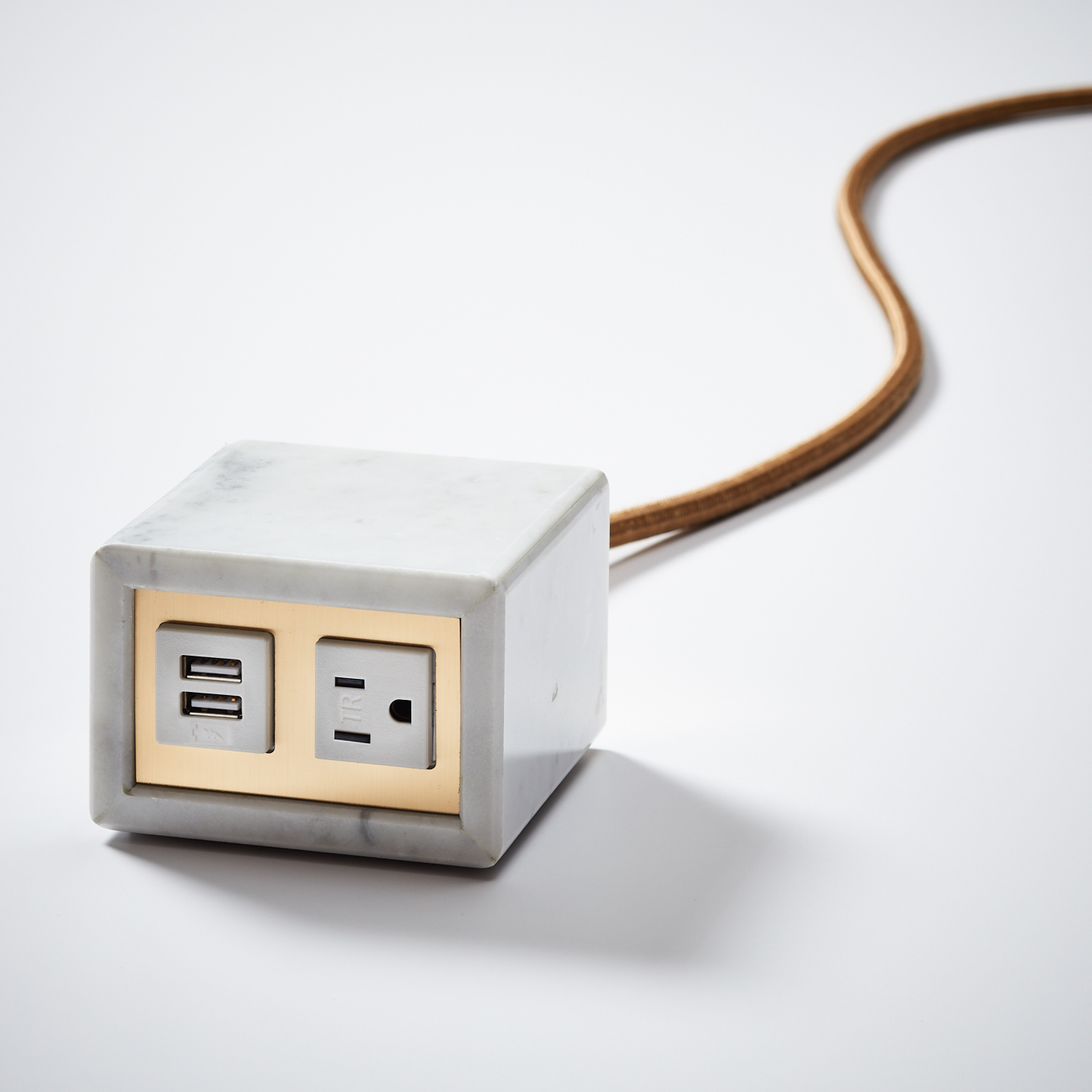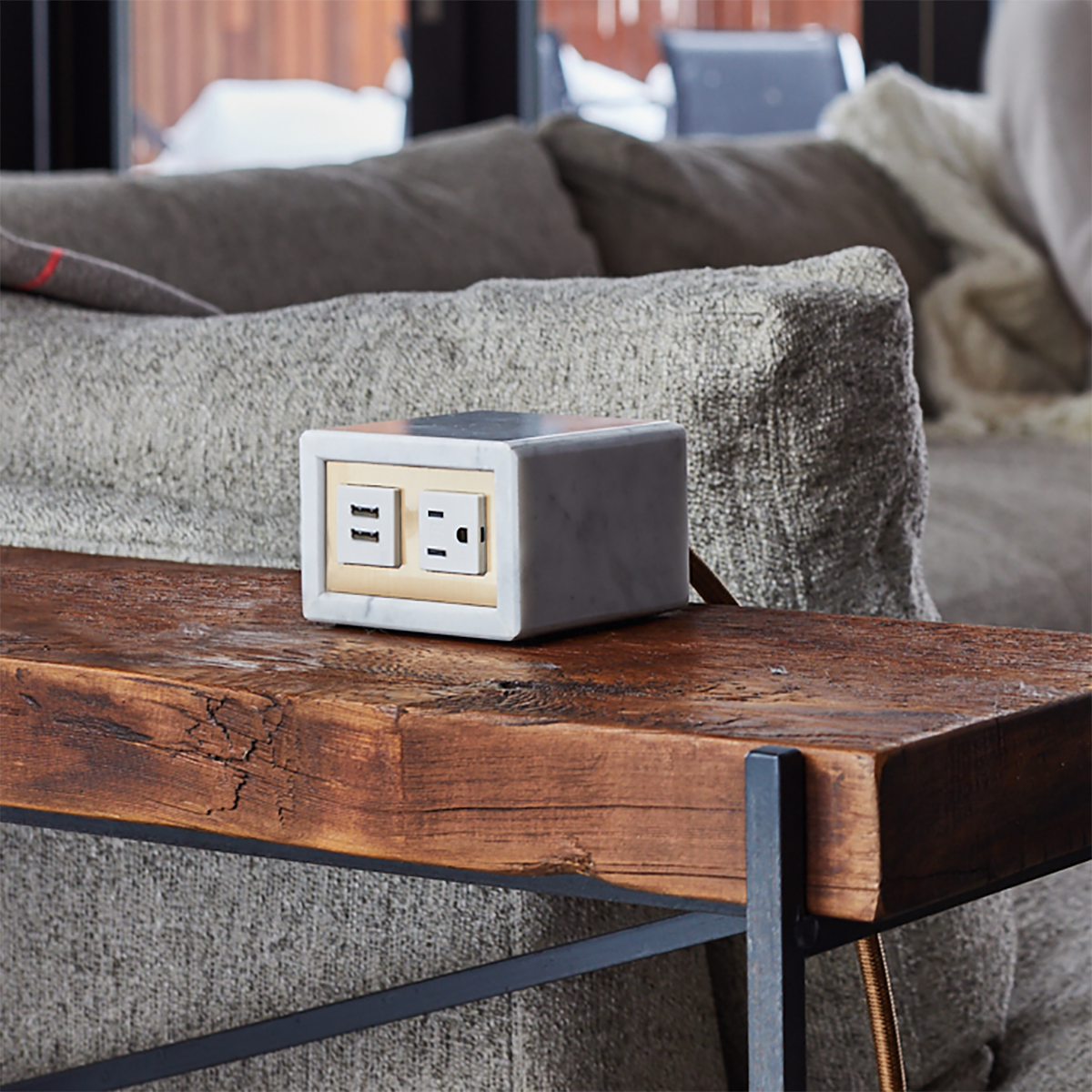 Convenient and compact, Monument delivers both 110 power and dual USB charging. Clad in a minimalist marble finish quarried in Italy and hand-hewn by artisans, with an elegant metal faceplate and braided metallic cord, it’s a weighty beauty worthy of a place in any high-end interior.