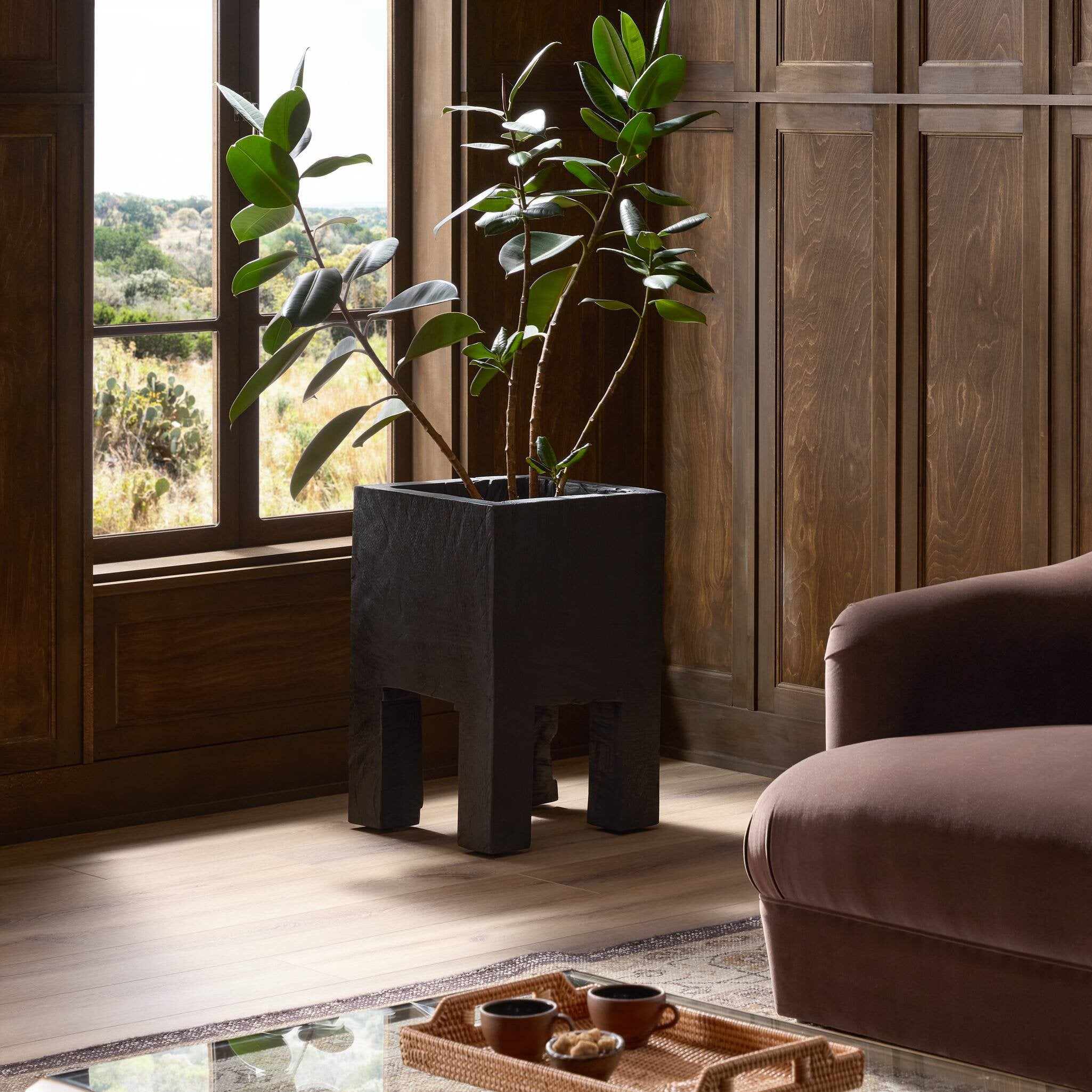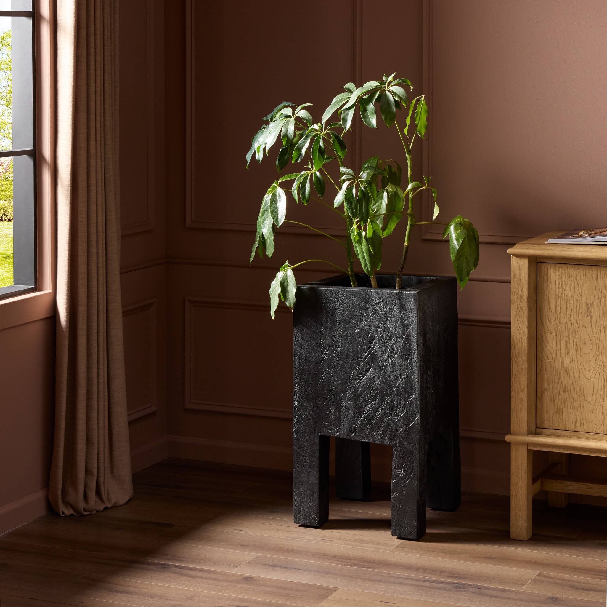 Crafted from character-rich reclaimed wood, this statement planter celebrates natural texture and authentic detail. Deep cracks, weathered grain, and organic imperfections create a beautifully “found” look with timeless appeal.