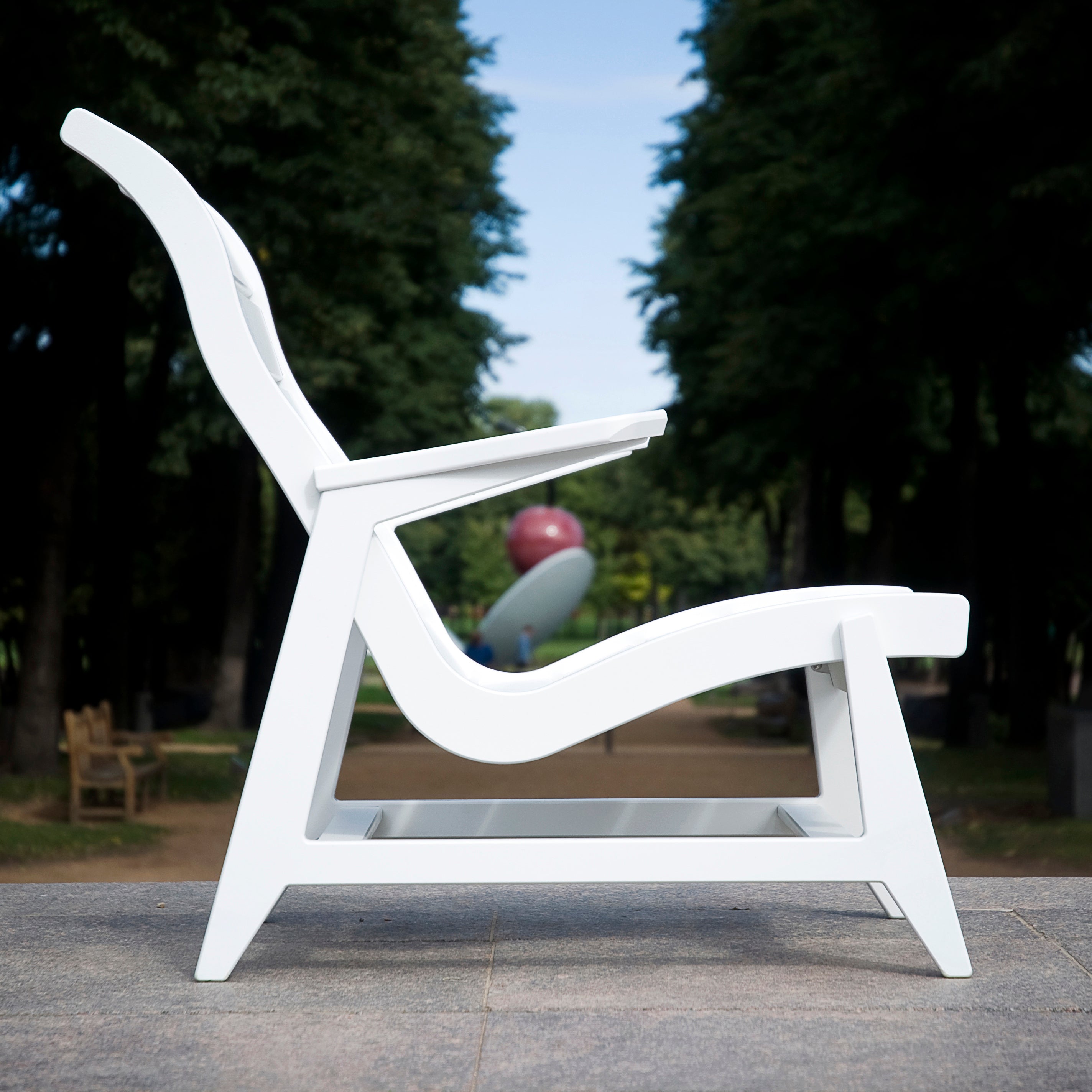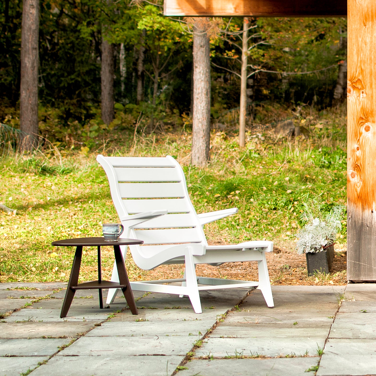 Loll Designs’ Rapson® Collection, including this high-back patio chair, honours midcentury architect Ralph Rapson. Loll Designs worked with Ralph’s son Toby to create eco-friendly versions and variants of the Rapid Rocker, originally built in the 1940s.