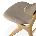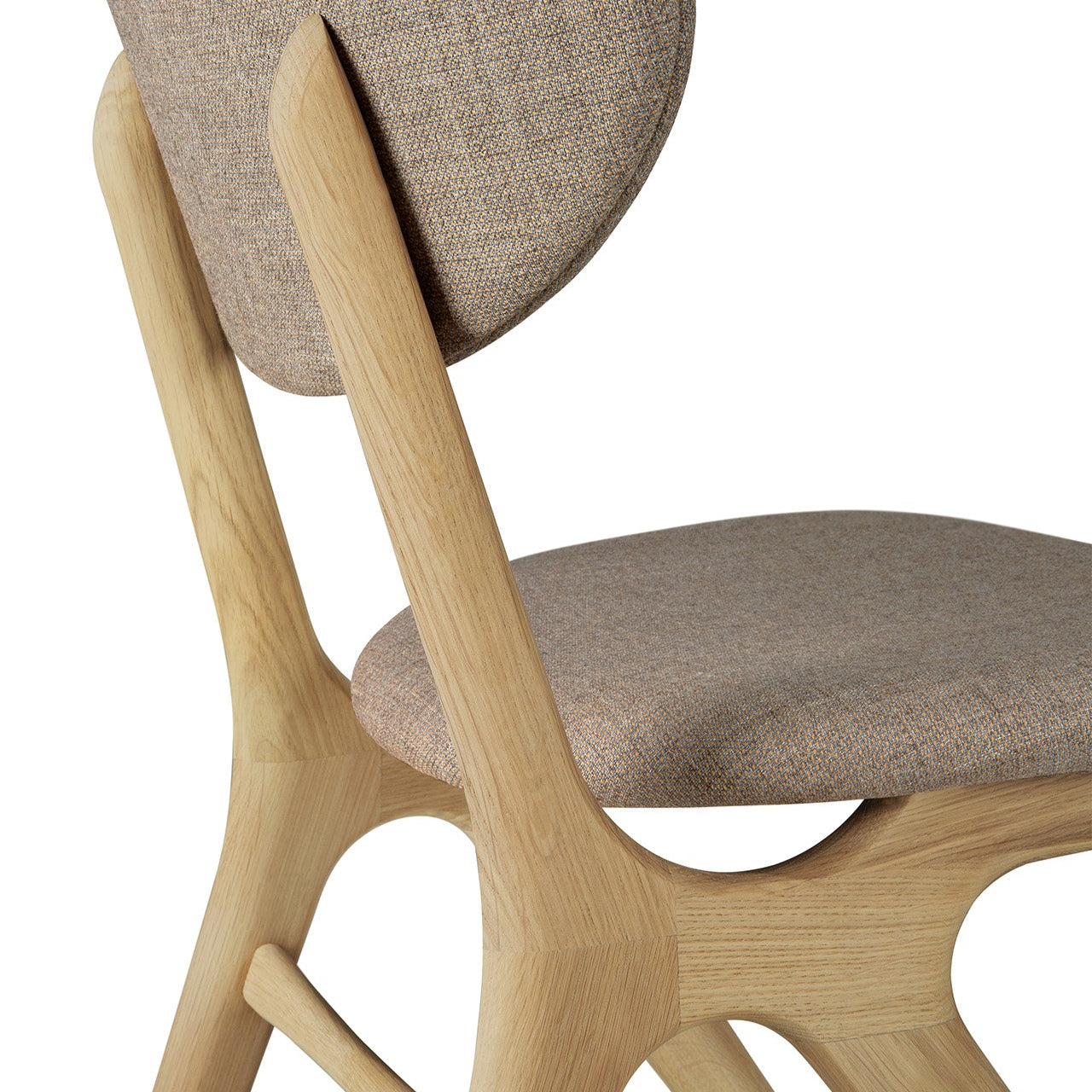 Made from solid oak with a varnish finish. Upholstered with Warm Grey fabric.