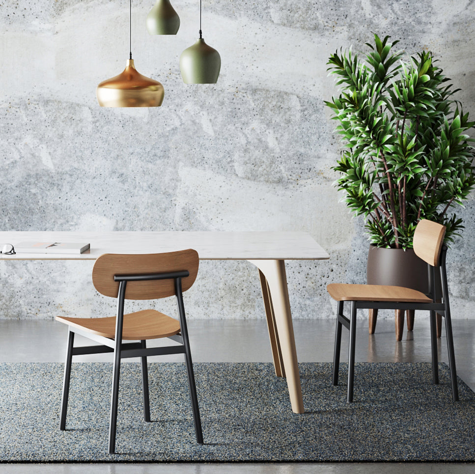 Timeless with a solid build, this chair presents a poised seating option for any surrounding. This modern chair comes in a wood or upholstered seat and back. Suitable for both commercial or residential use, the base is made of thick steel tubes and can withstand high traffic areas. The unique design of the wide seat and backrest provide comfort while still being a timeless design.