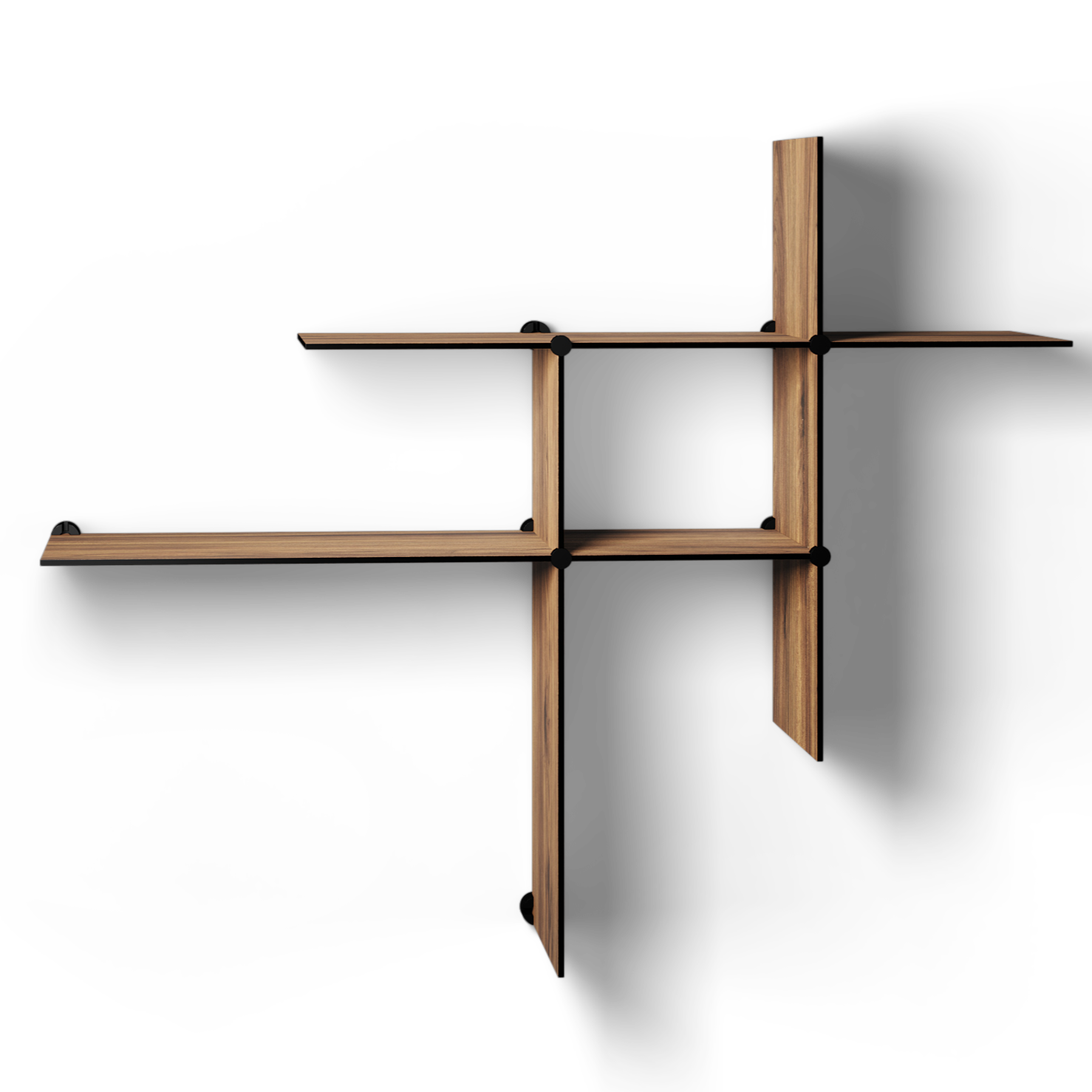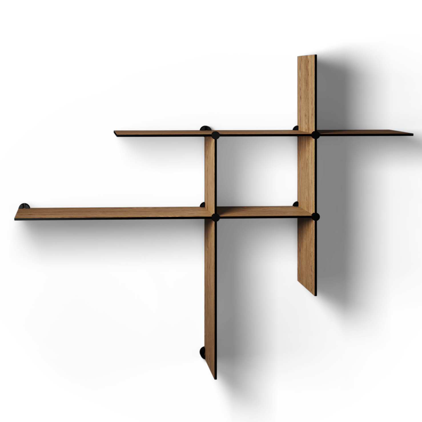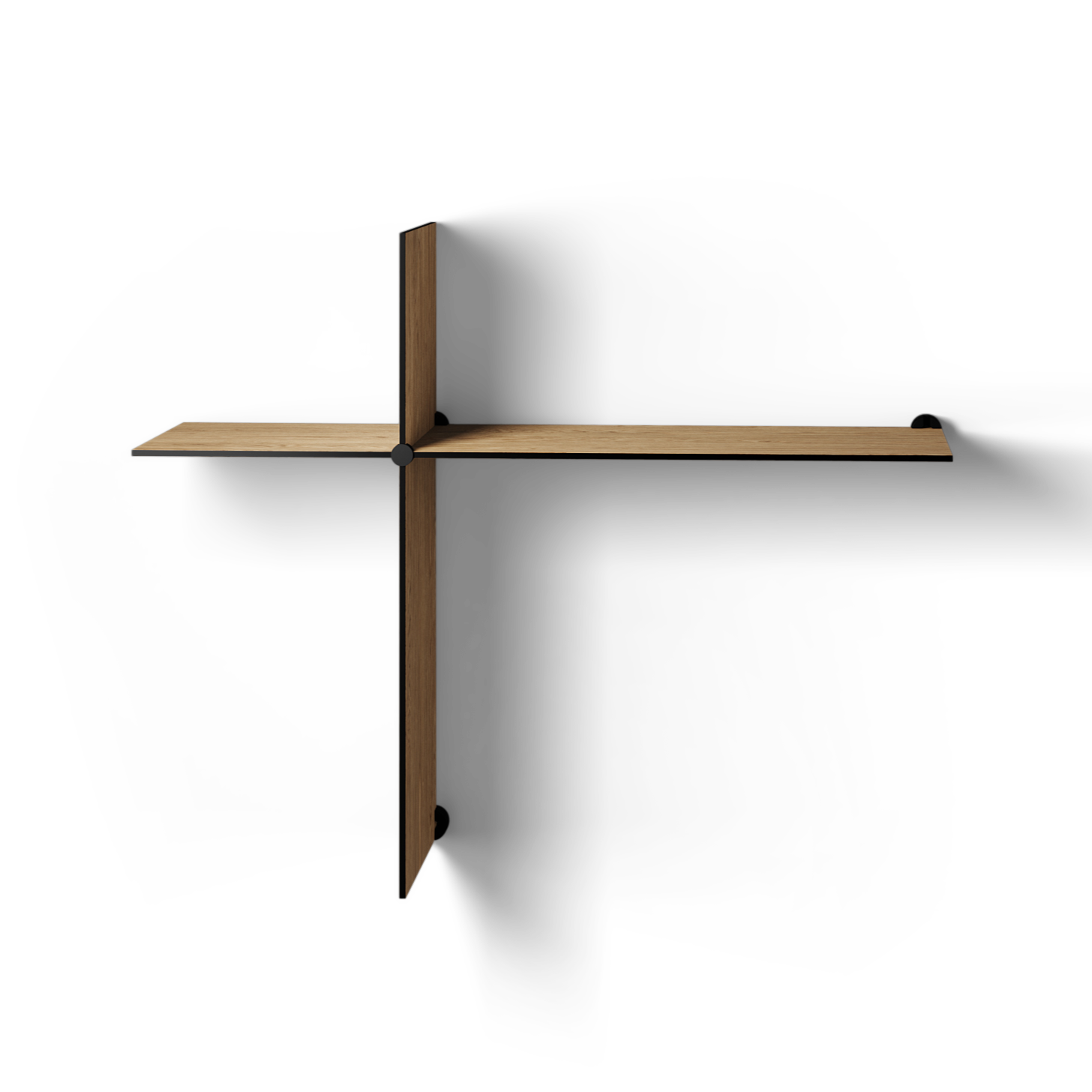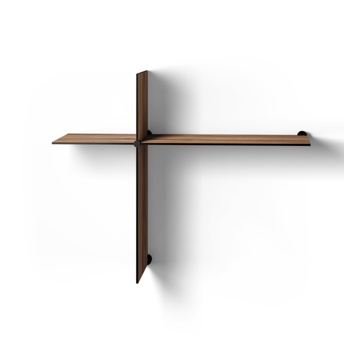 Up The Wall is a flexible shelf system that invites the customer to co-create. The shelves are sold in packages with one short and one long shelf that together form an asymmetrical cross. Assemble more sets of shelves as you wish and create your own unique storage solution customized for your needs.