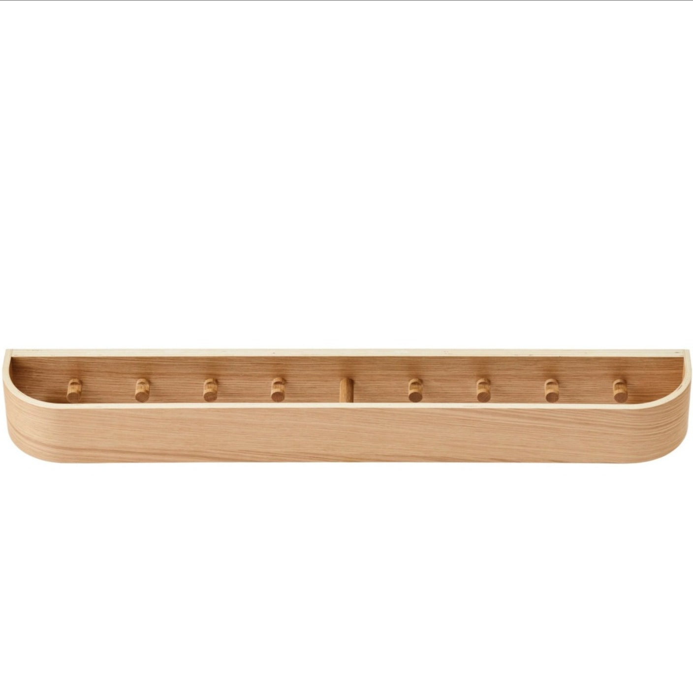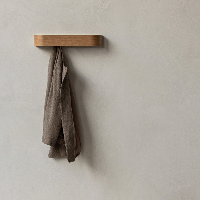 Clean lines, intuitive function and innate beauty define the Epoch Clothes Rack. Updating the ubiquitous coat rack and working from the idea of concealing unsightly hangers and tags behind something beautiful, the minimally elegant design profiles a considered combination of gently rounded edges, warm wood and discreet functionality.