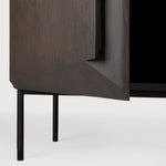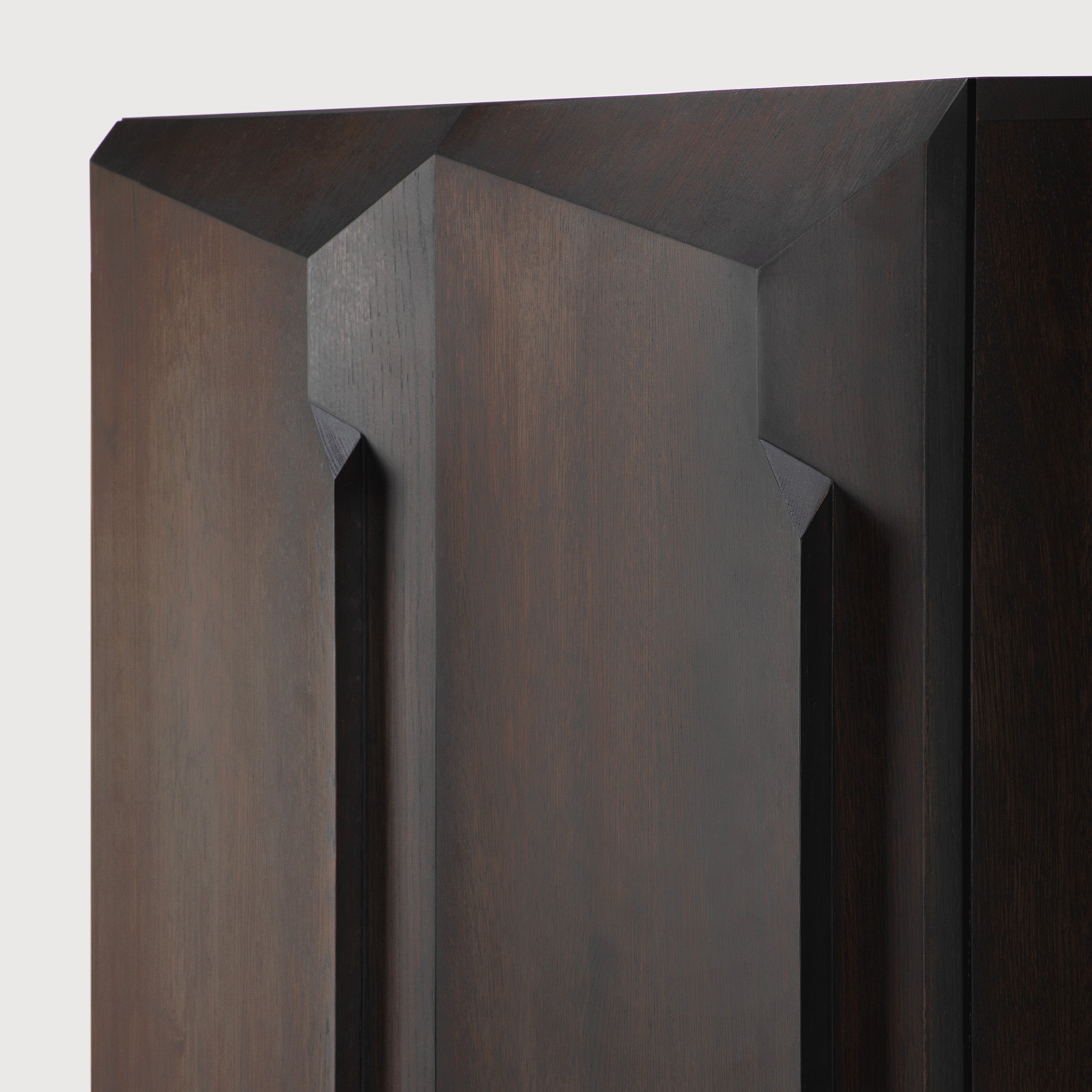 An angular composition, designed by Alain van Havre, forms the heart of a design that aims to distance itself from traditional static and immobile surfaces. A unique sense of volume is created which alters your perception of the cupboard as you walk by.