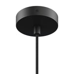 • 8’ long twisted black fabric cord connects to a black, round metal ceiling plate. UL Listed