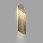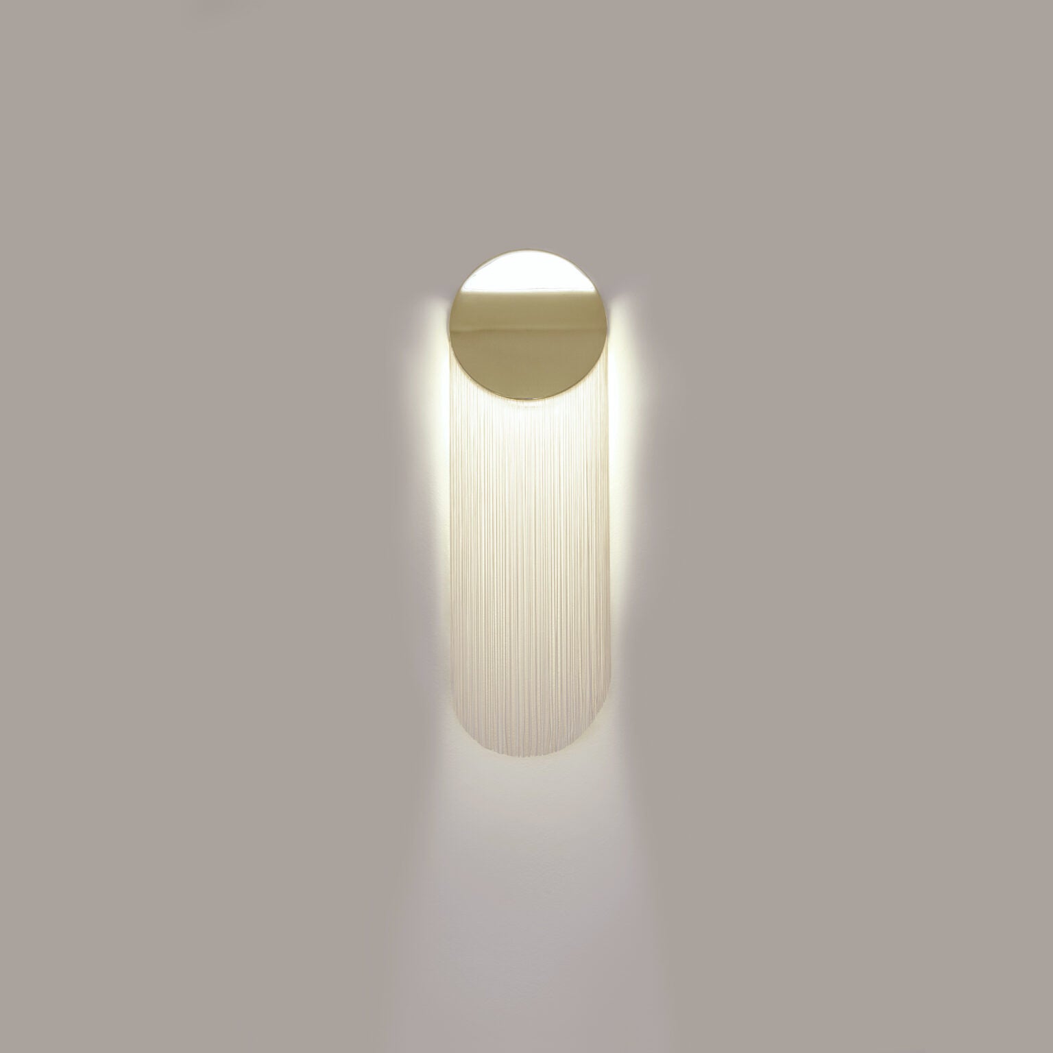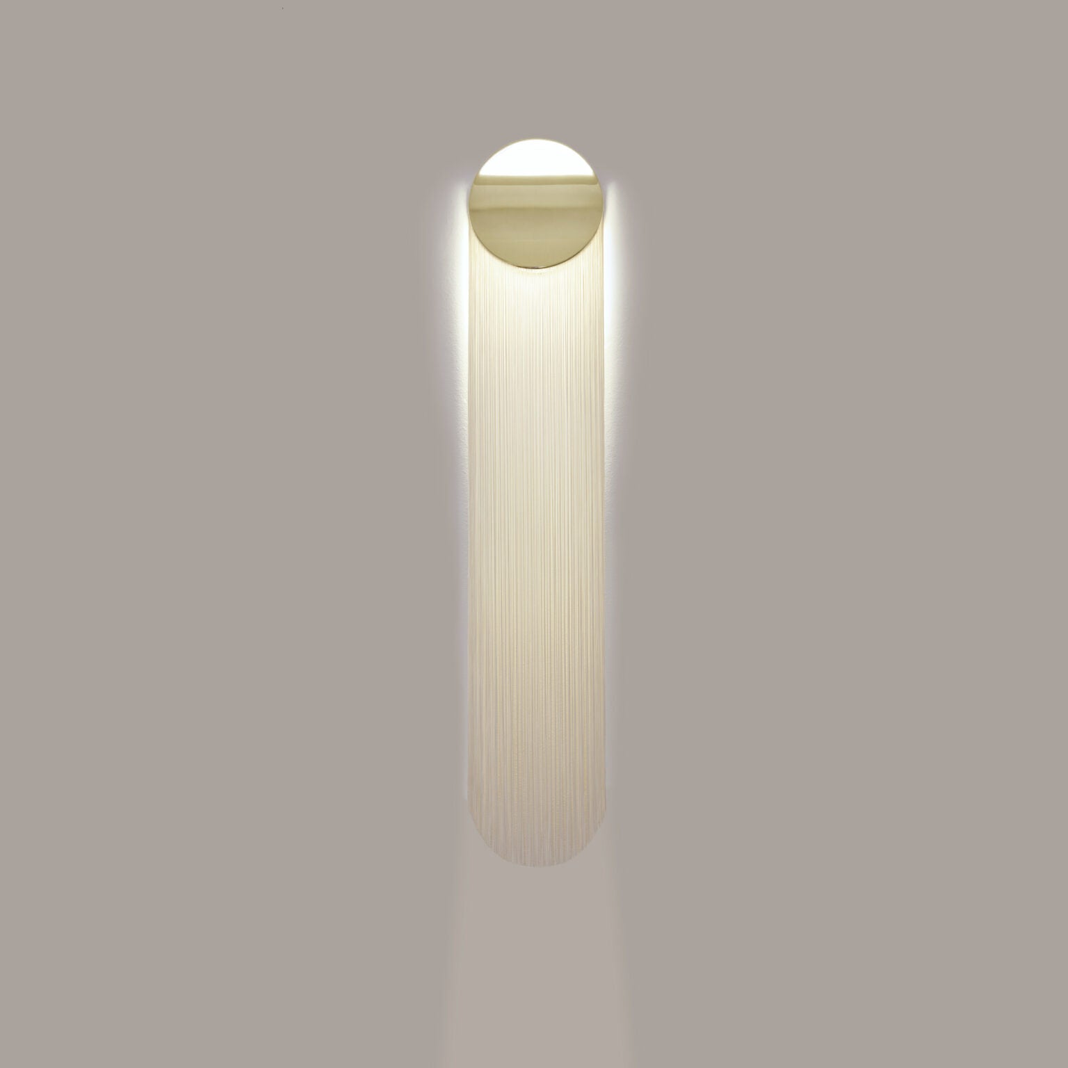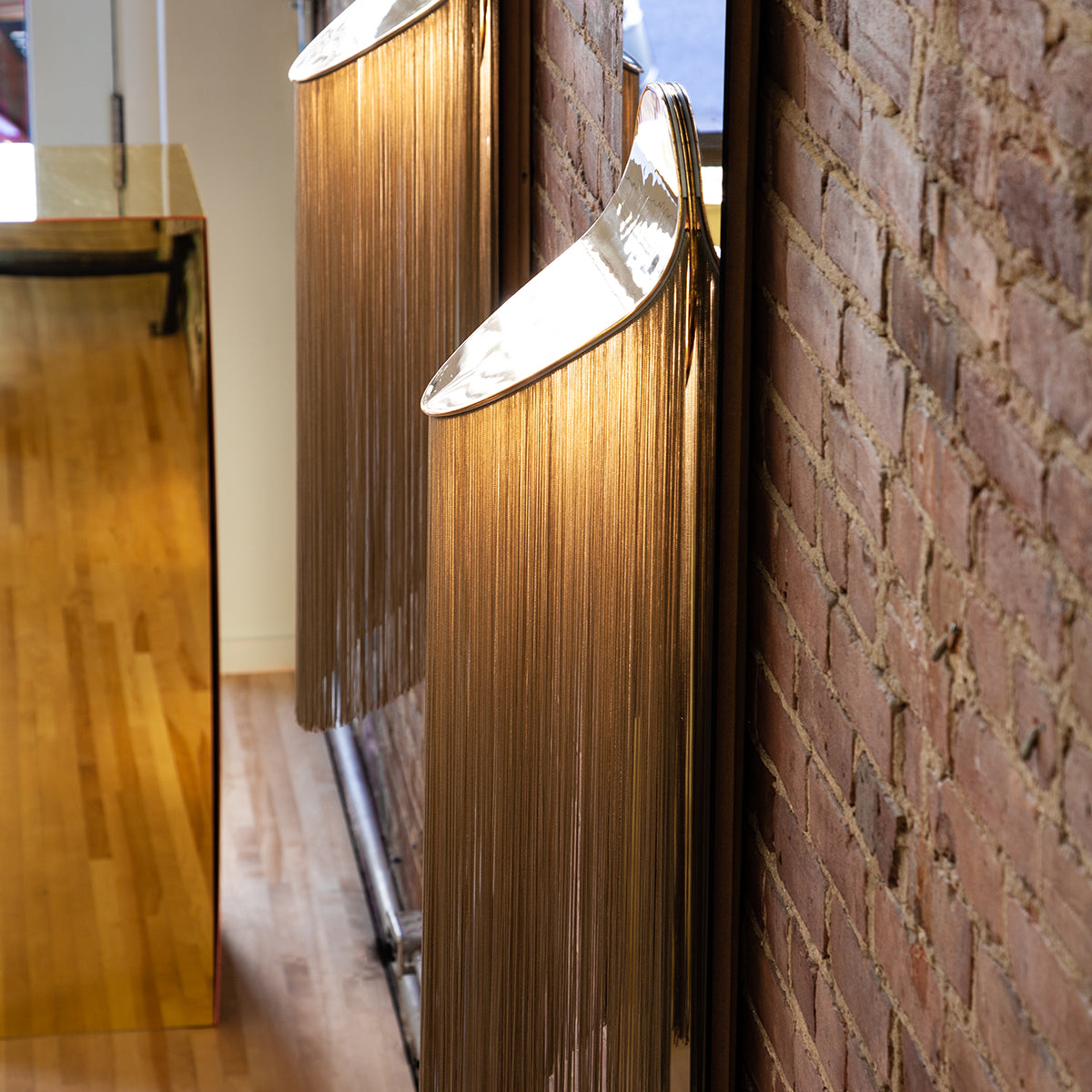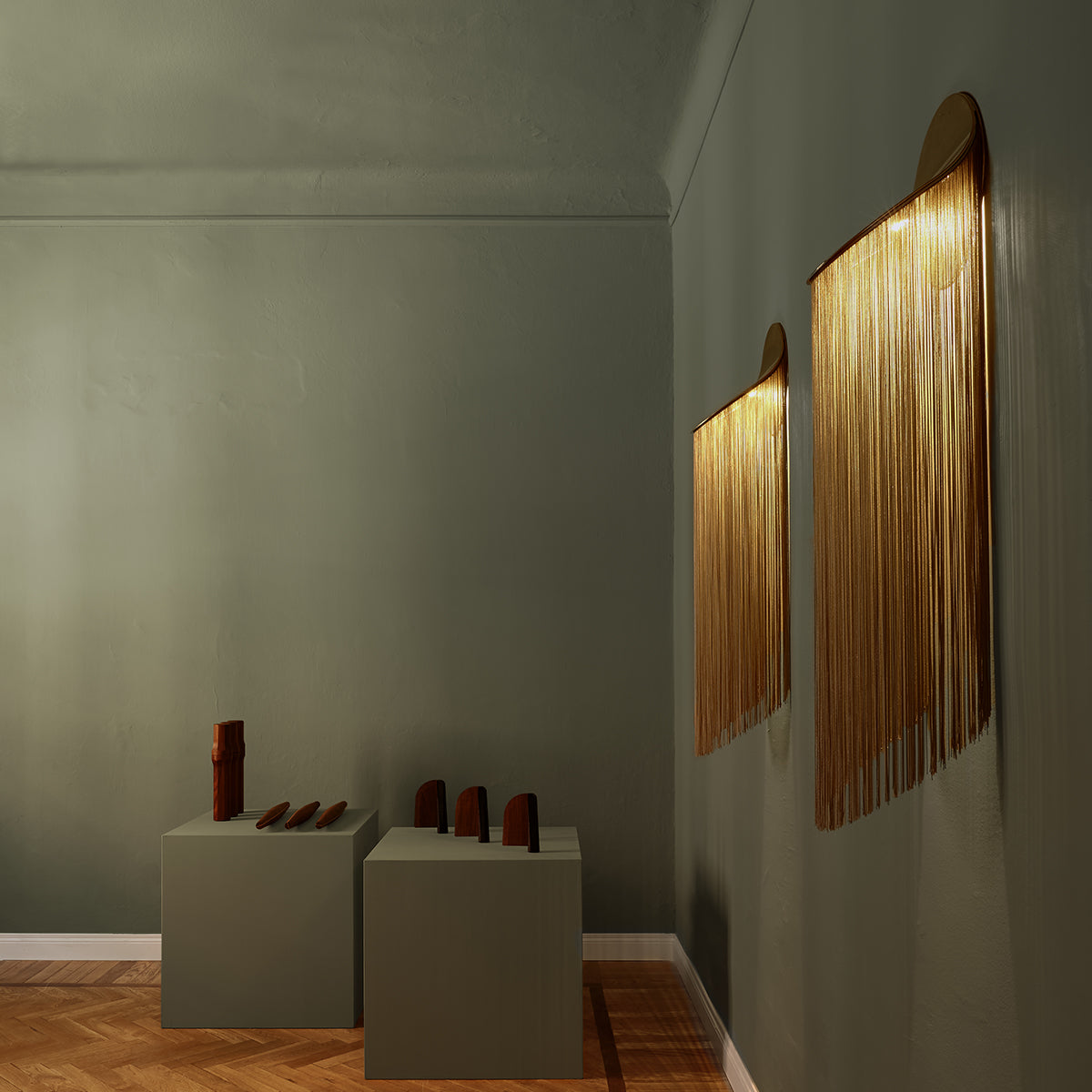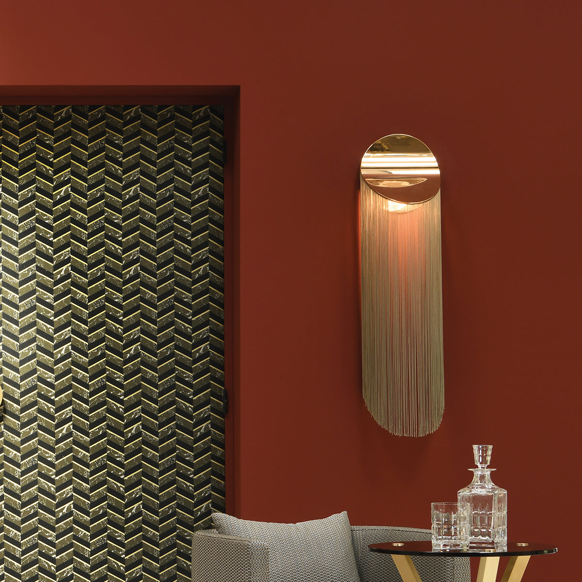 Cé audaciously blends fringes and solid bronze revealing a well-rounded wall mounted fixture. The unique movement of the fringes brings a fluid effect, distinguishing this piece from previous collections, all the while remaining faithful to the minimalist look of candid lines present in each of d’Armes creations.