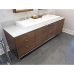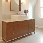 Our free-standing or floating vanities are constructed with a simple recessed wood top - ready for sink and countertop installation. Our simple, clean-lined design is the perfect starting point to create your ideal personal storage configuration.