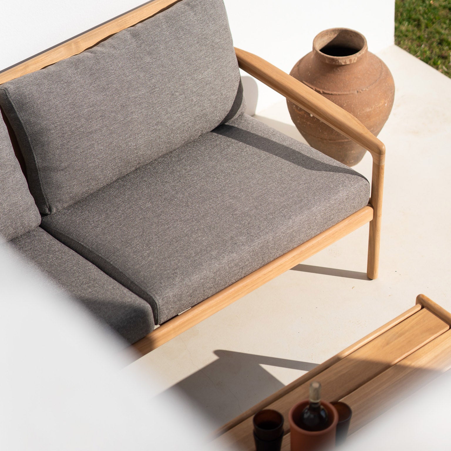 Why lounge indoors when you can bring clean, sophisticated lines and authentic, high-quality materials & textures outside? Featuring upholstery woven in Belgium and a 100% solid teak frame, the Jack outdoor collection from Ethnicraft offers classic, minimal lines with a modern touch. Every detail has been meticulously crafted to ensure comfort and elegance while enjoying the outdoors.