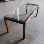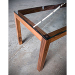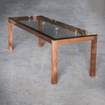 With a simple clear glass top, the focus here is all on the natural beauty and warmth of the solid wood frame. This table can be made in your choice of solid walnut or solid rift-cut oak.