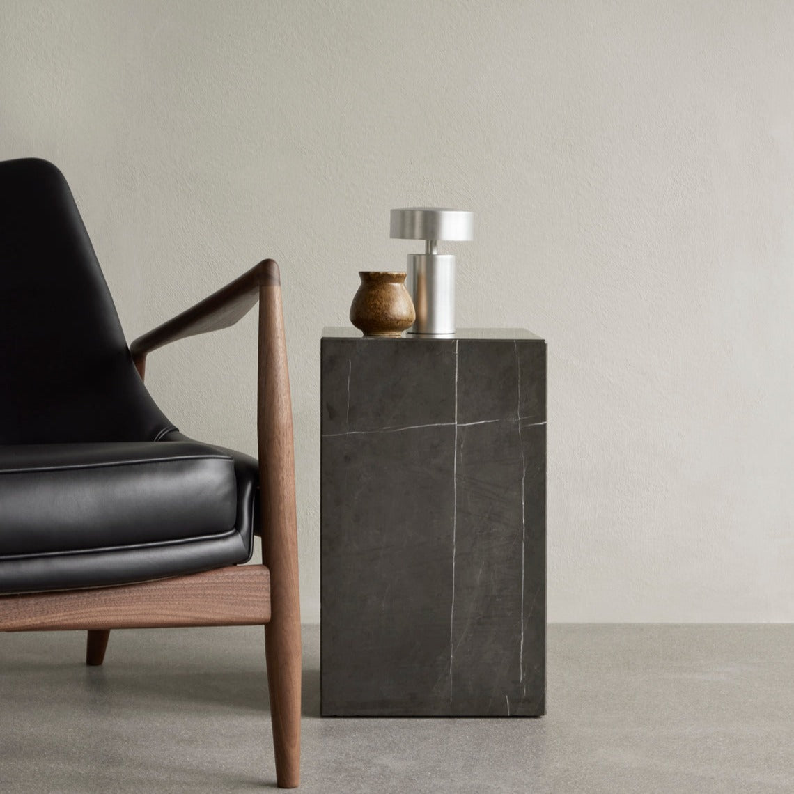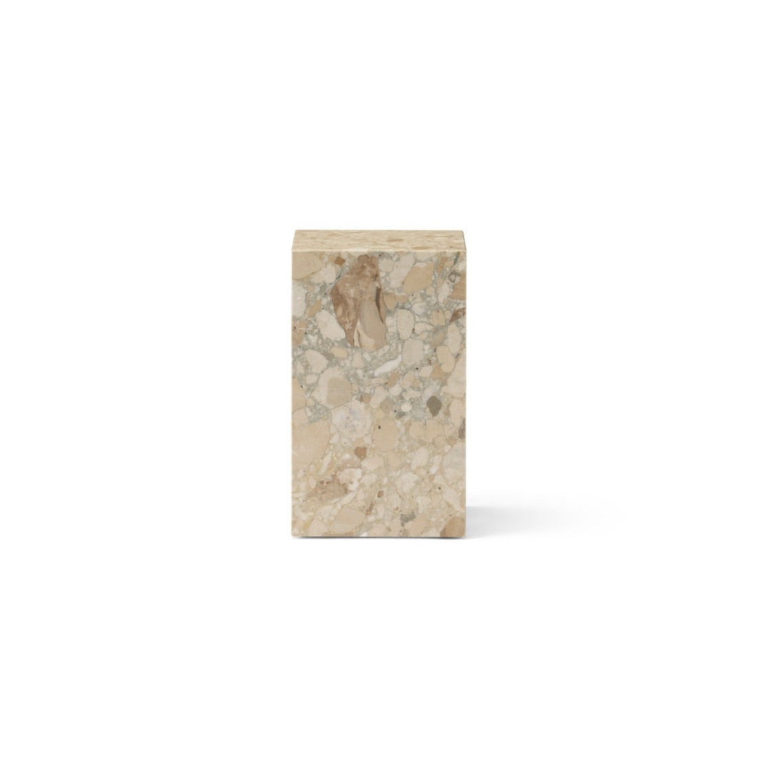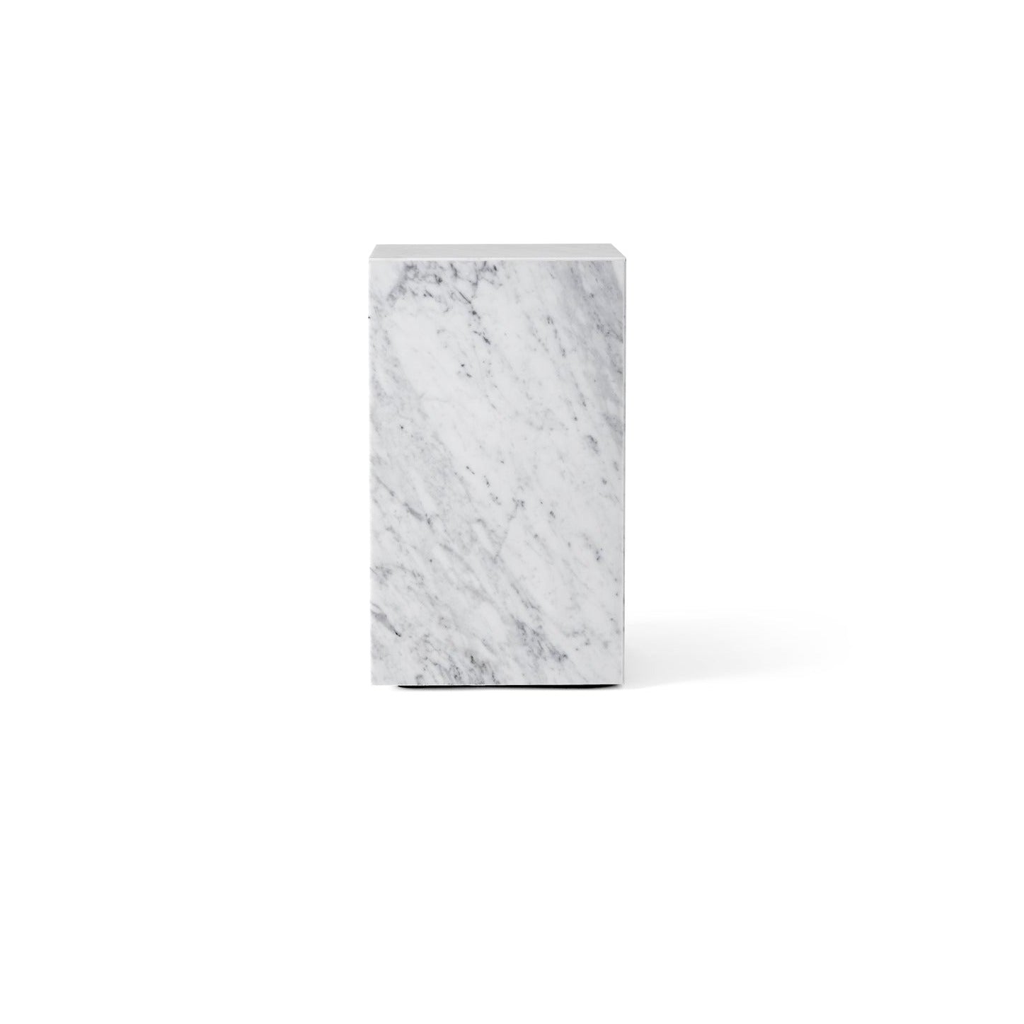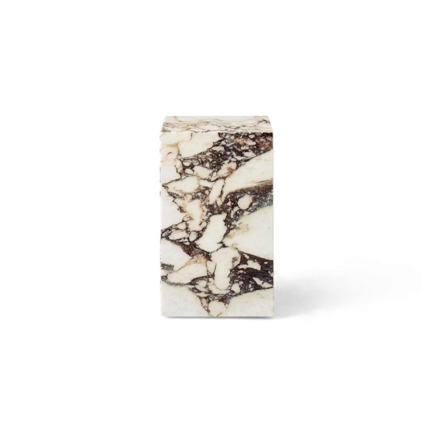 The Plinth comes in cubic, tall, and low variations, offered in a selection of various marble types. It is important to note that marble displays distinctive natural patterns ensuring that, while the quality and form remain constant, each individual product is inherently unique.
