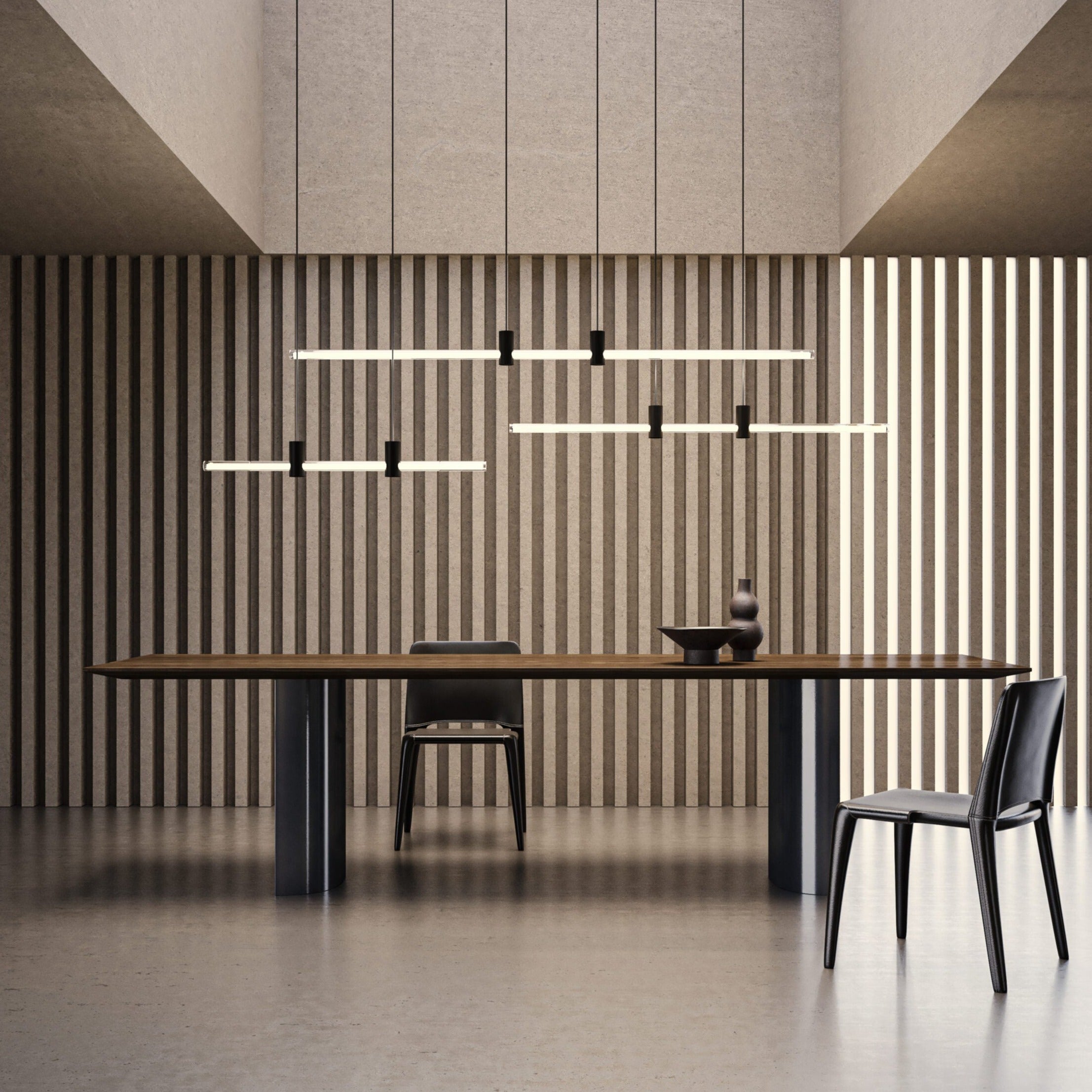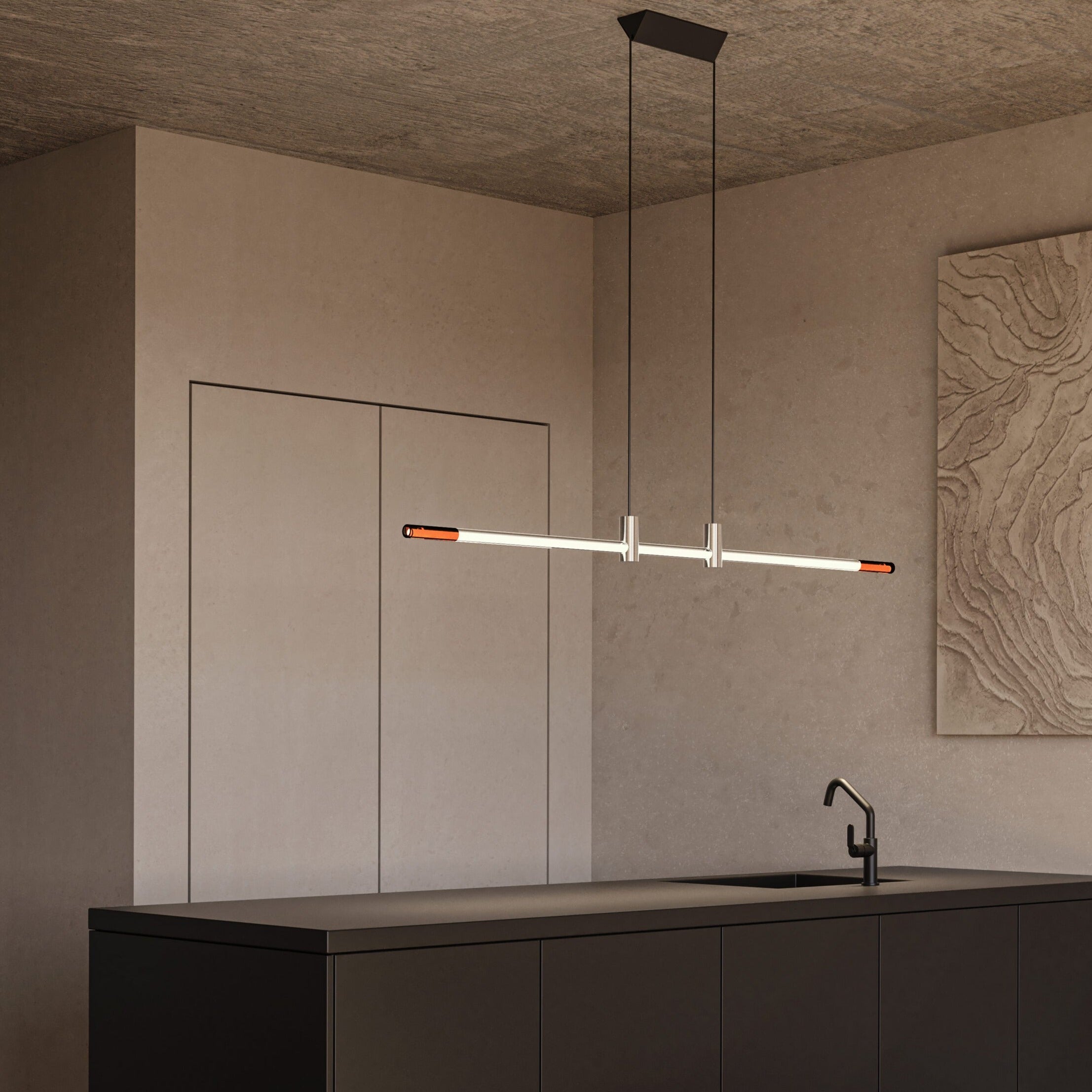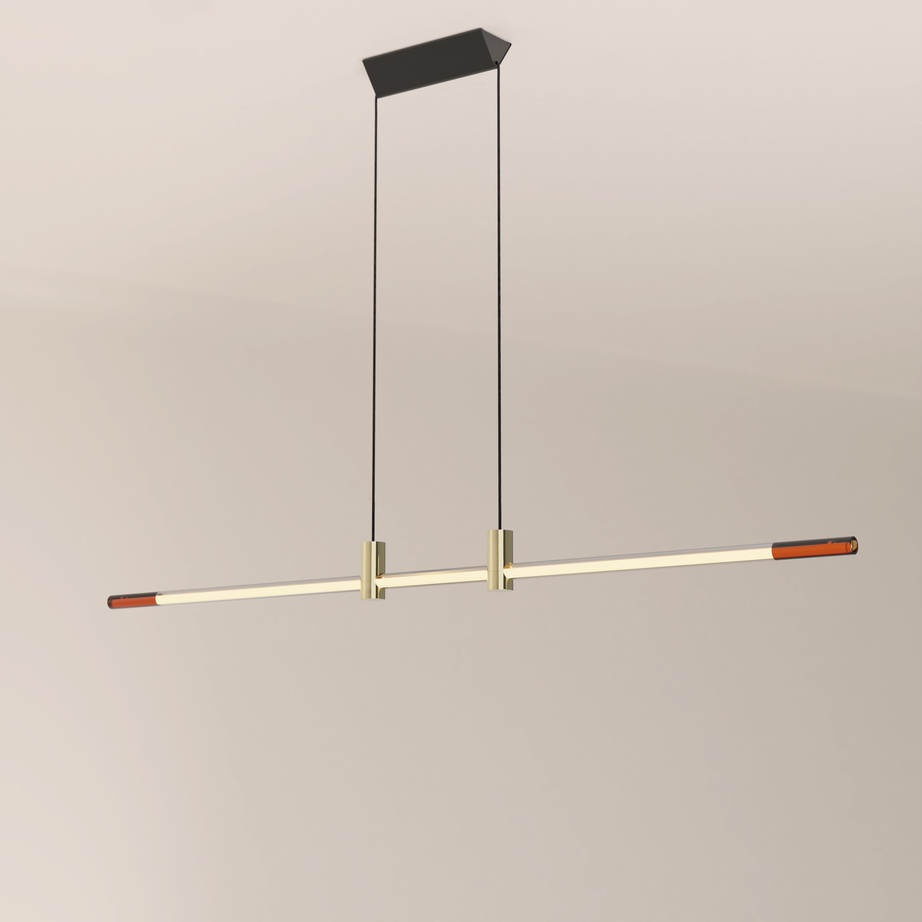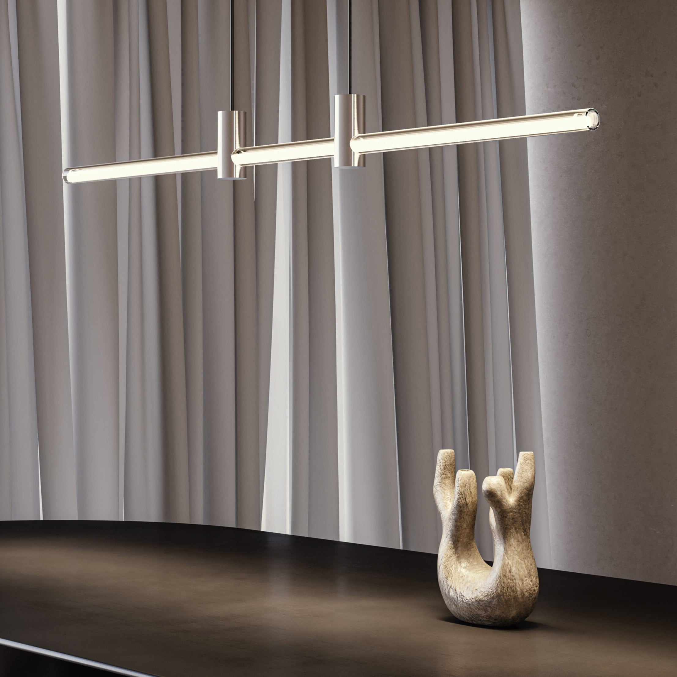 D'Armes renews our view of this object by giving it a noble design that becomes the centrepiece of luxurious and warm lighting. Their LED tubes encapsulated in hand-bent glass produce a warm light with adjustable colour temperature from 2700k to 4000k and up to 1900 lumens. RA lights seduce and surprise with the hypnotic light and aura they emit.