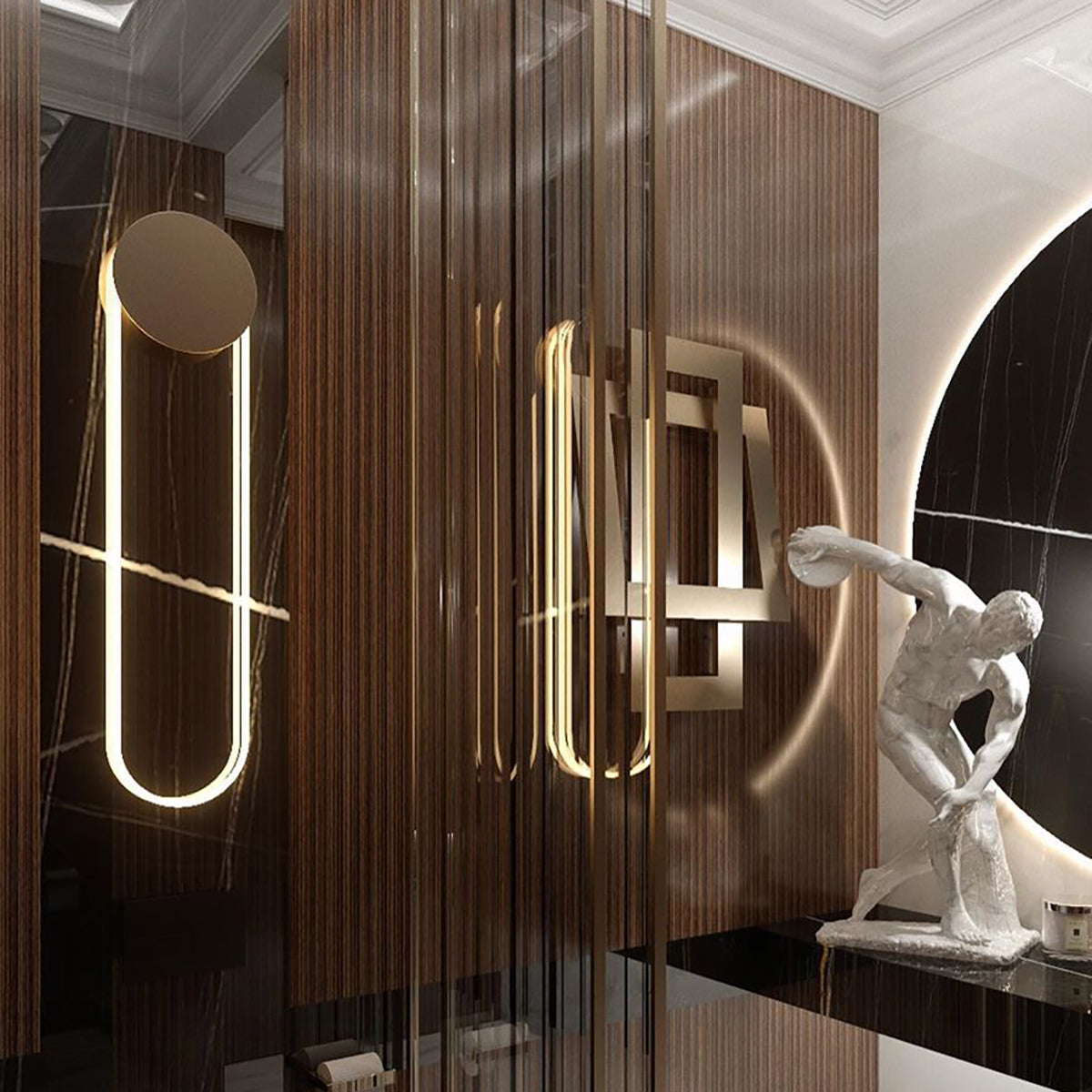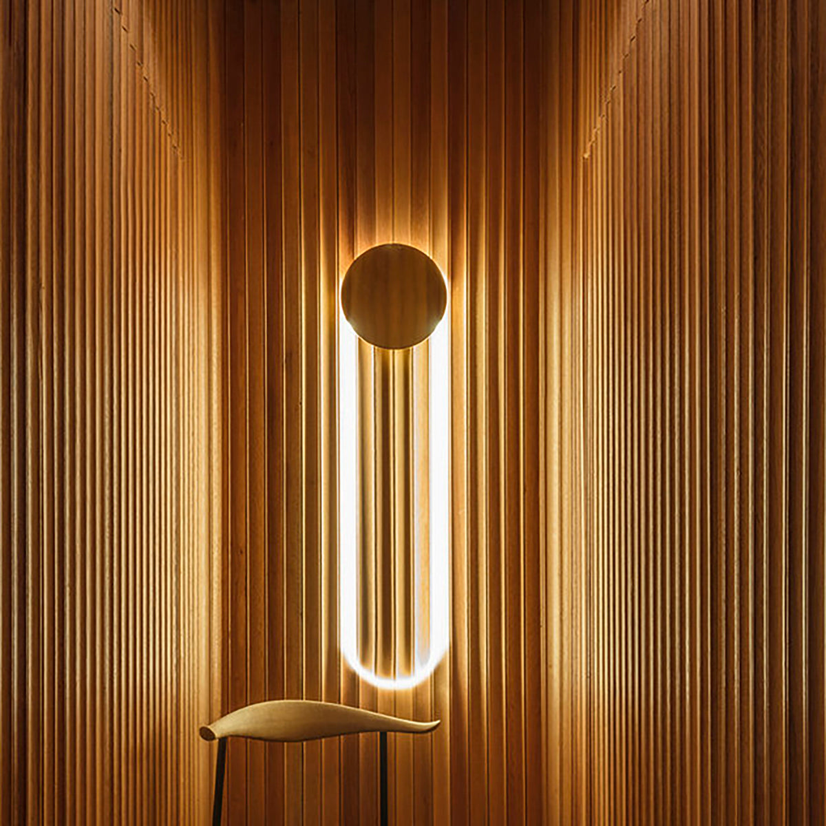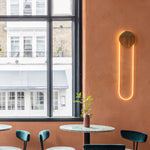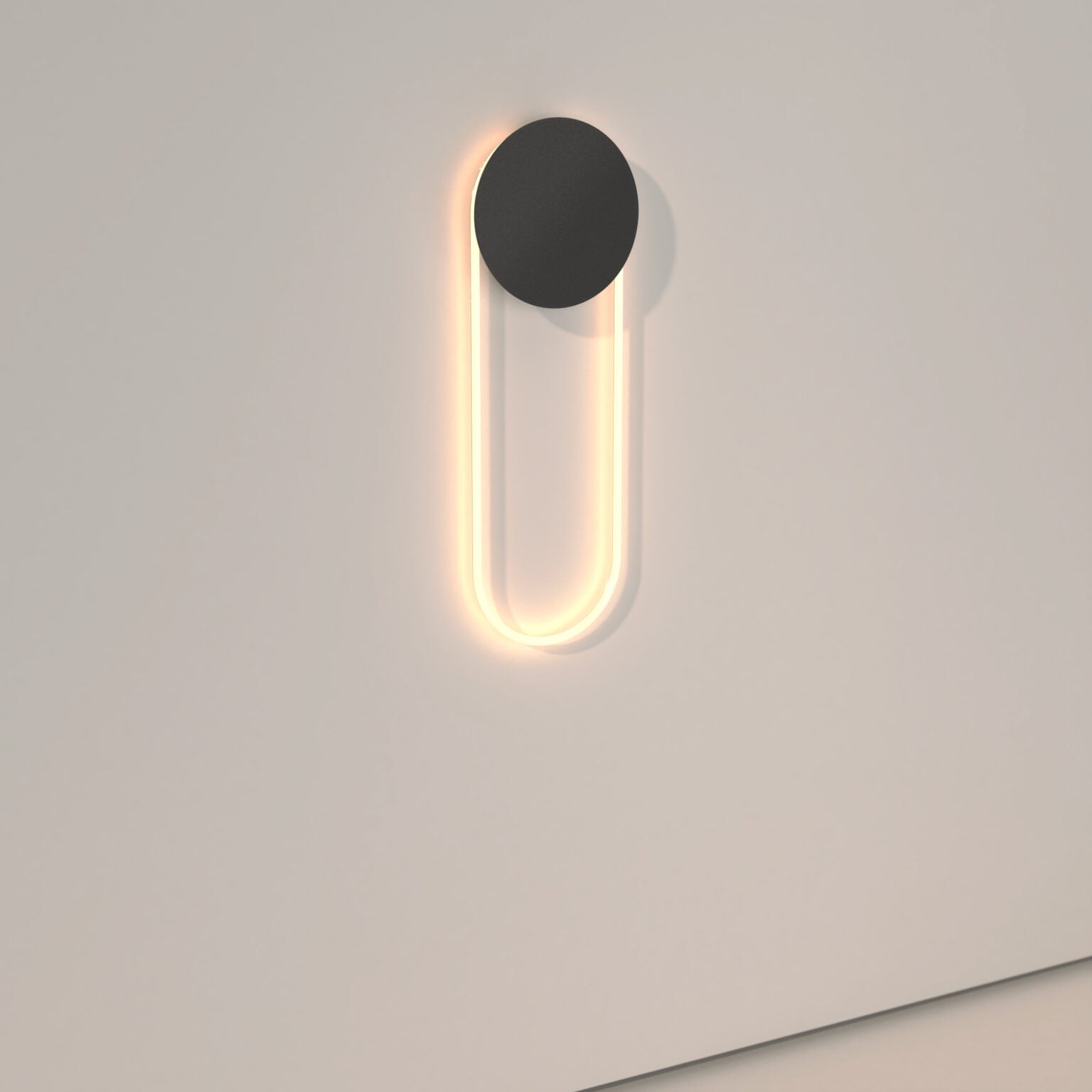 The RA Wall plays with contrasts, shadows, and reflections to communicate with its environment. The disc eclipses some of the light and attracts reflections from the room. The rounded glass and LED emit a bright, soft light on the wall.