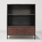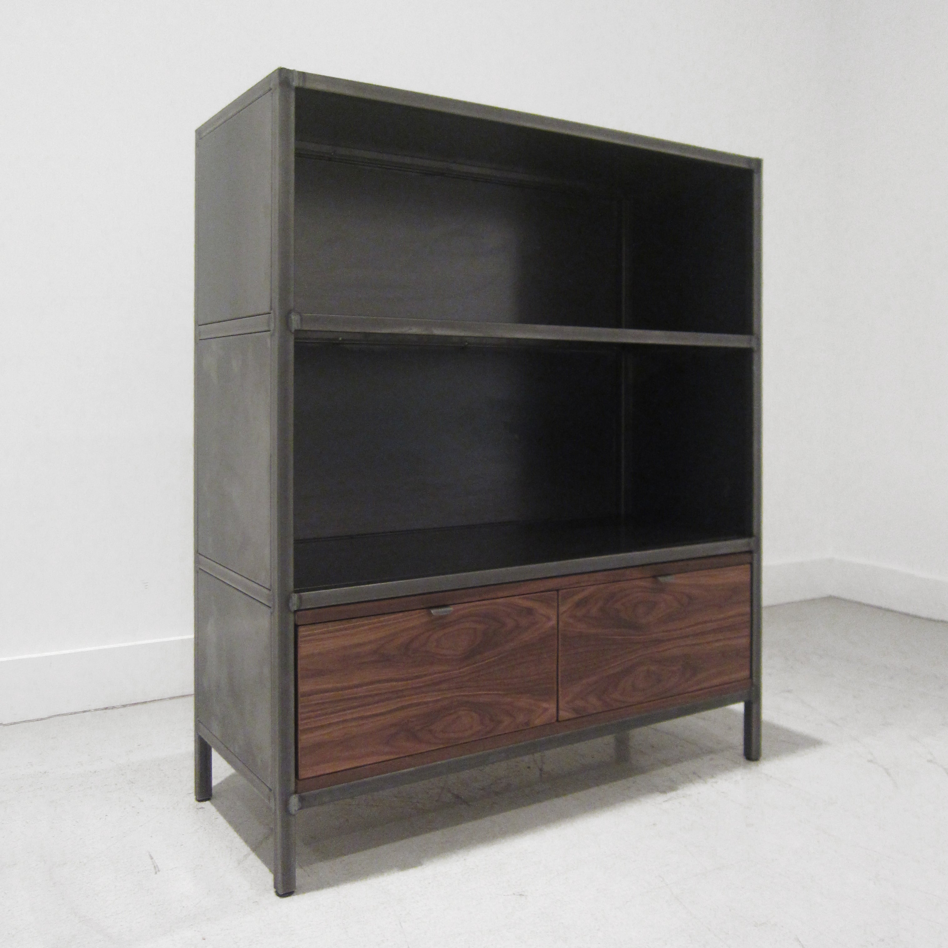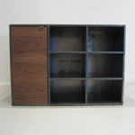 A versatile storage and display solution for vinyl, glassware or your priceless action figure collection. The fully customizable display case extends the beautiful juxtaposition of materials that distinguishes our Shaw series to incorporate wooden storage components within a framework of steel shelves.